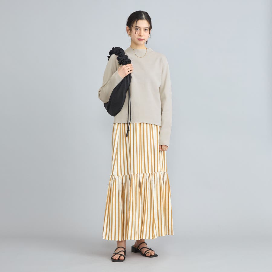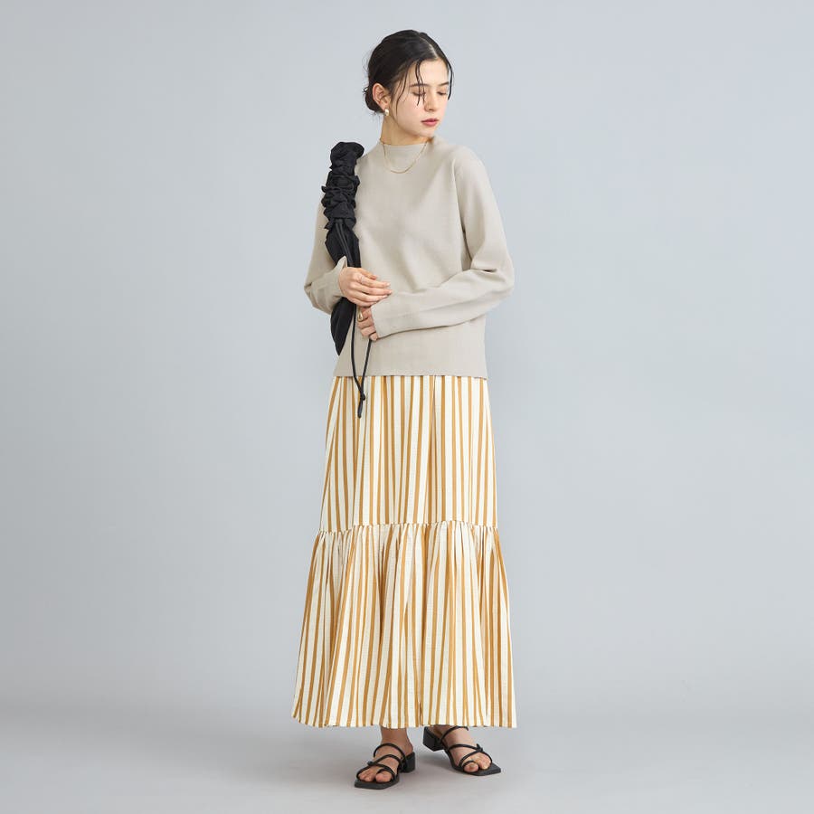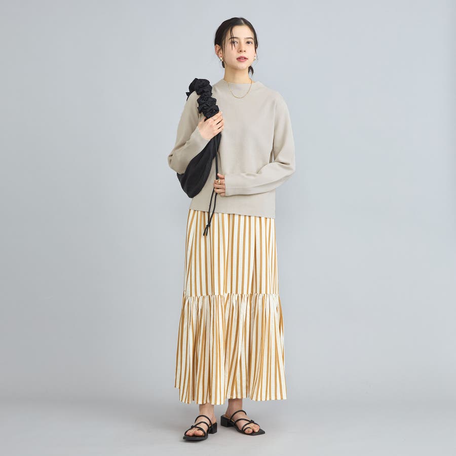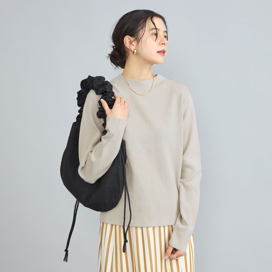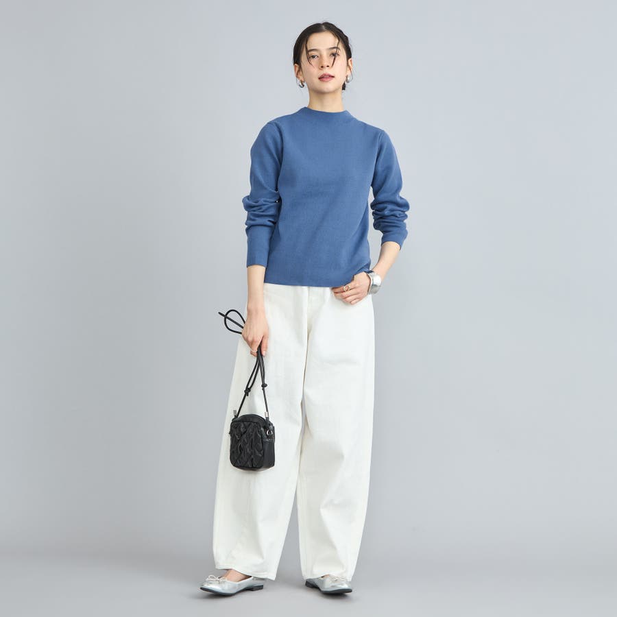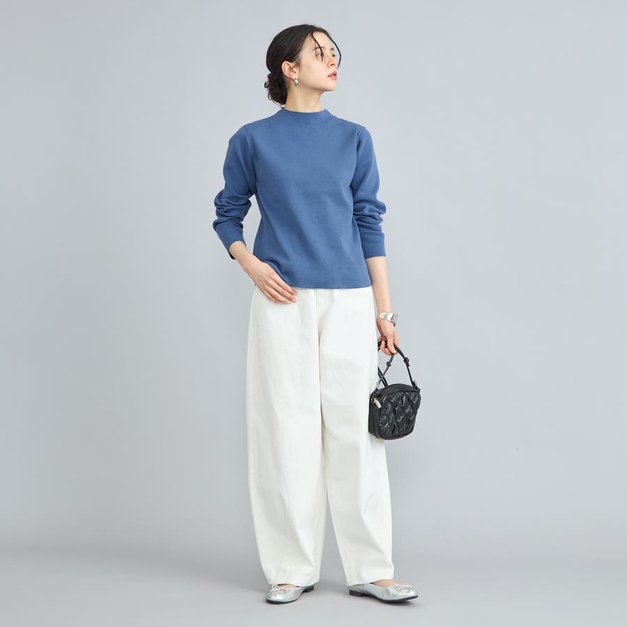 詰まり具合が程よいモックネックのニットプルオーバー。