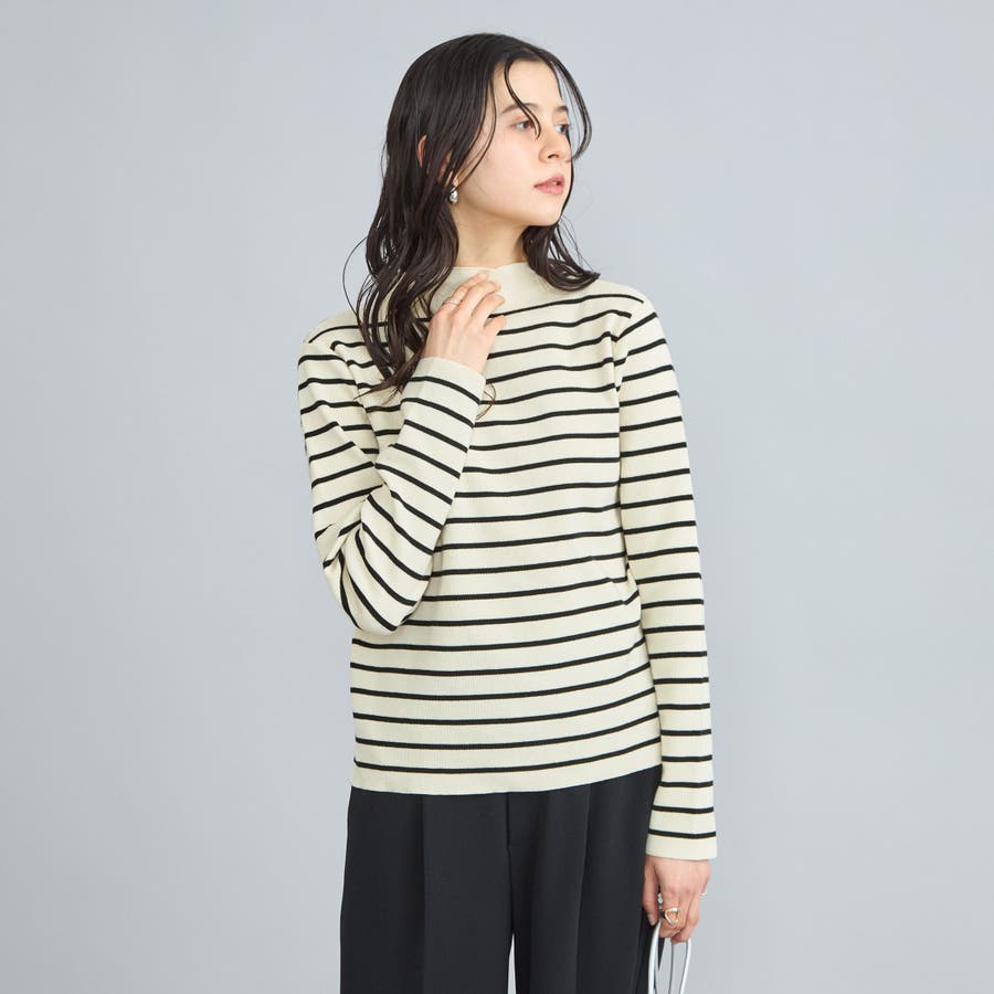 総針モックネックニット