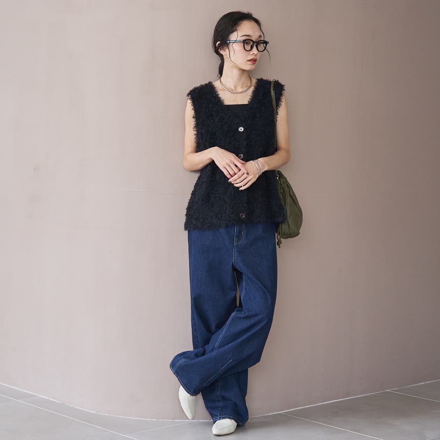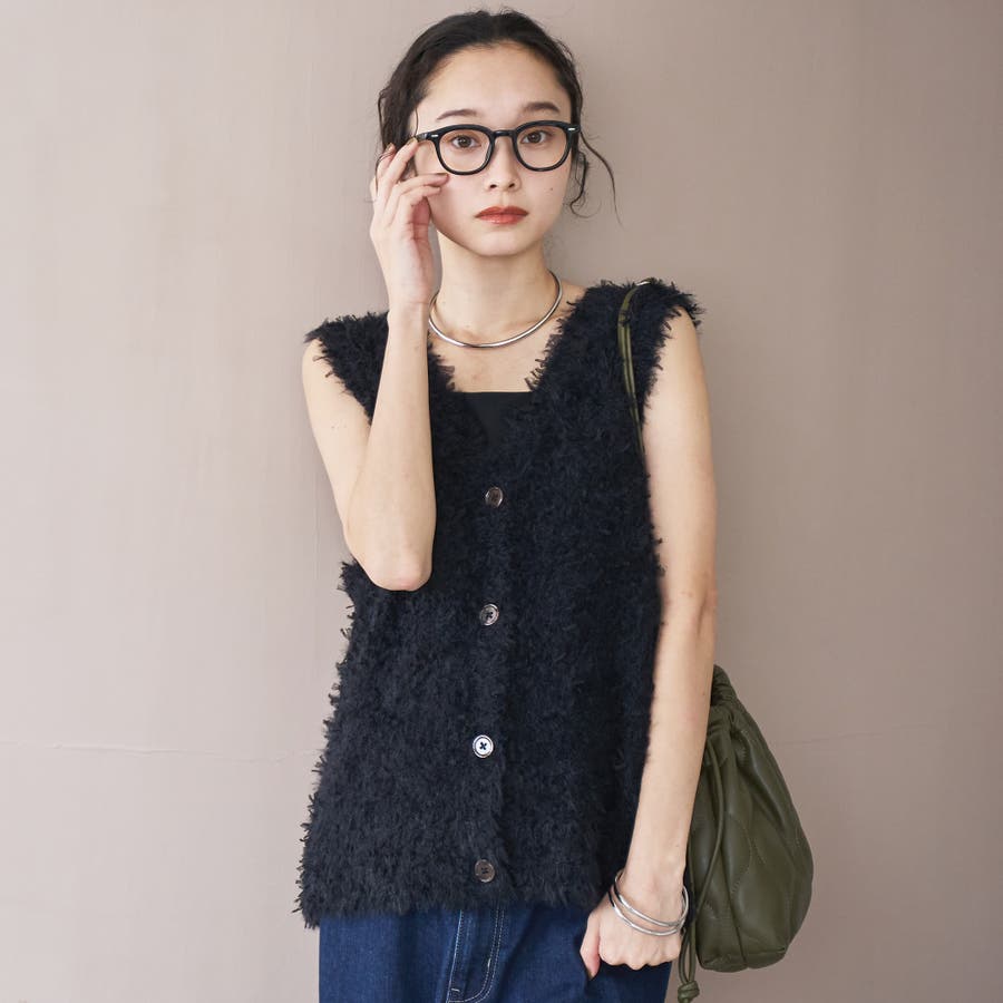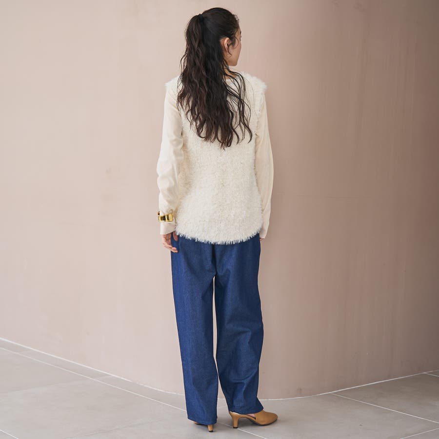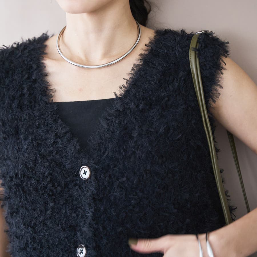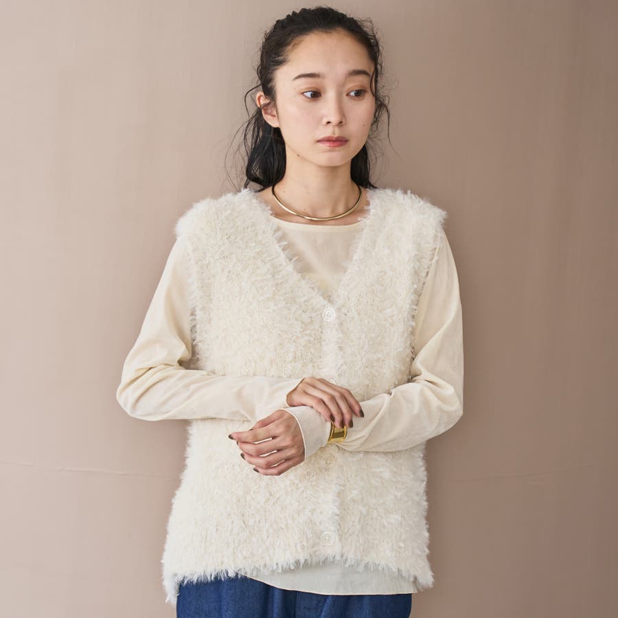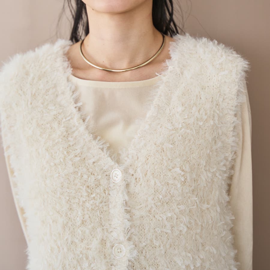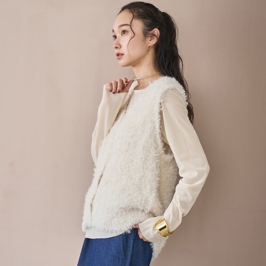 細かな毛足とチュールを合わせた編地で、女性らしい柔らかな雰囲気を演出。