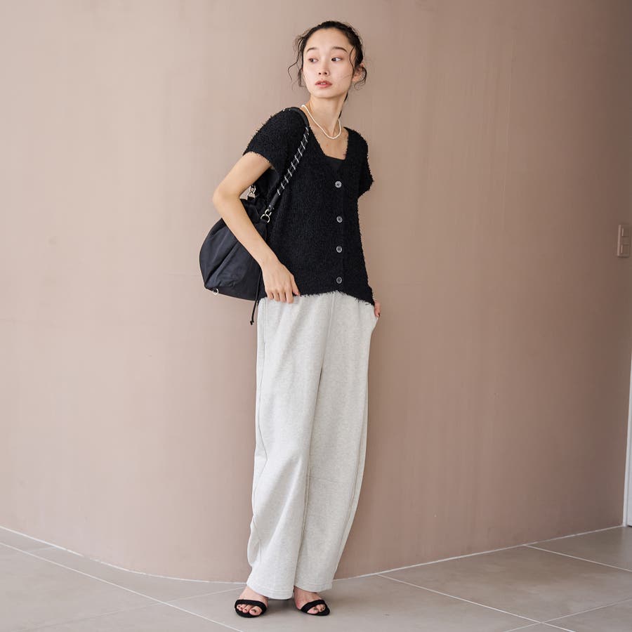 ゆったりとしたシルエットに前タックを加え、さりげなく体型カバーも。