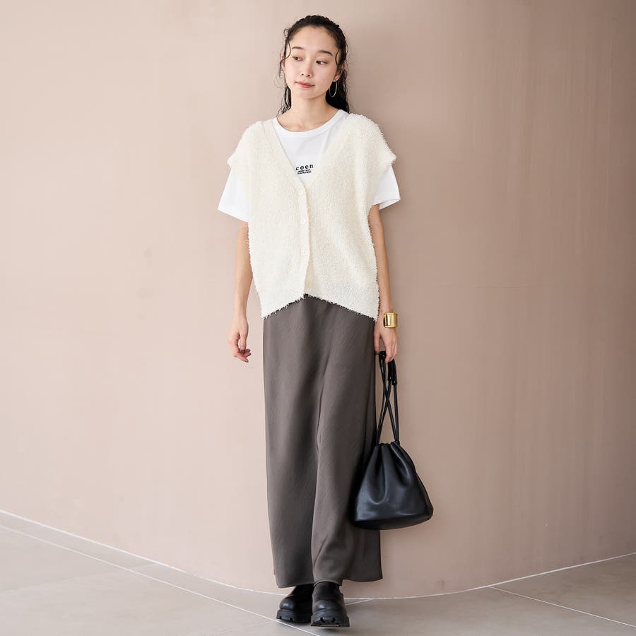 インナー次第でロングシーズン活躍し、カットソーやブラウス、ニットとも好相性です。