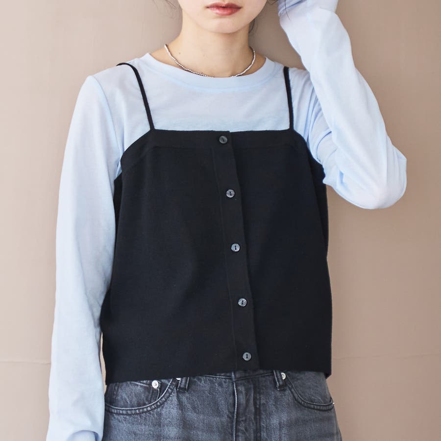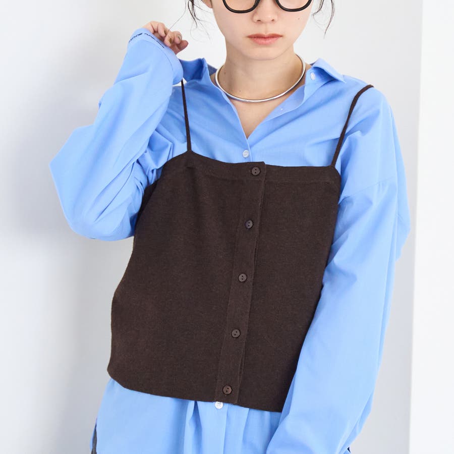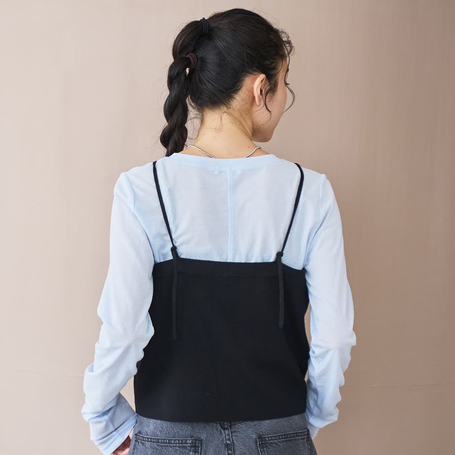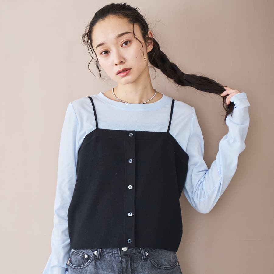 シャツやTシャツのインナーとしてはもちろん、同素材の襟付きカーディガンと合わせることで、より今年らしいスタイリングが完成します。