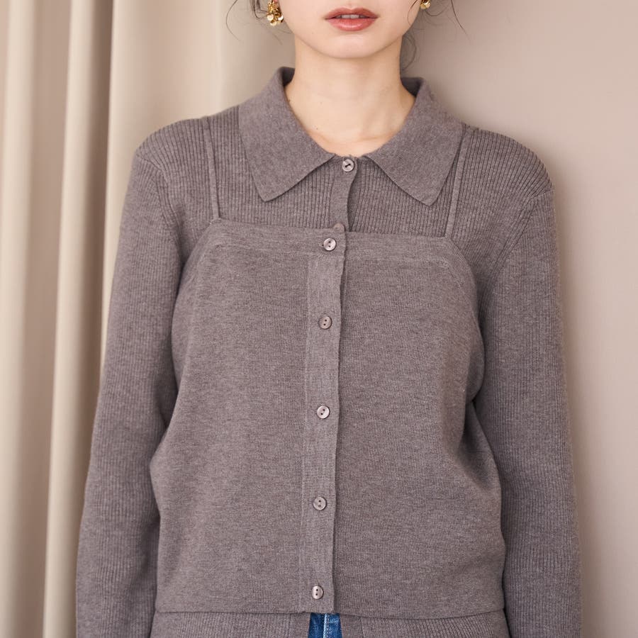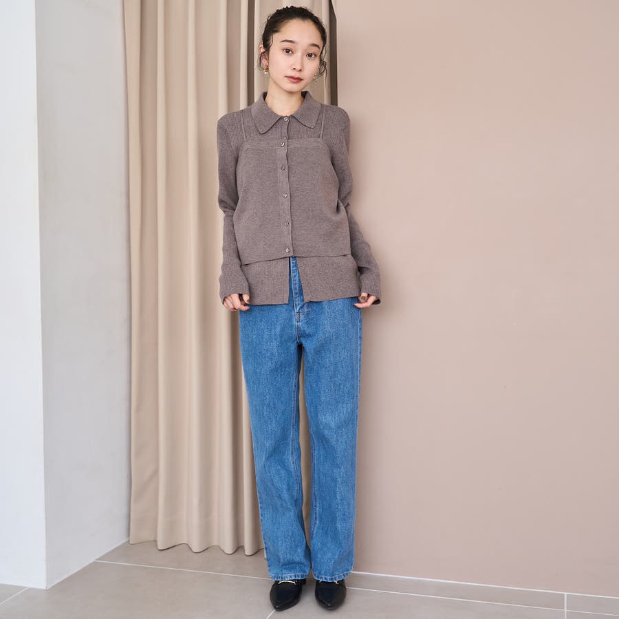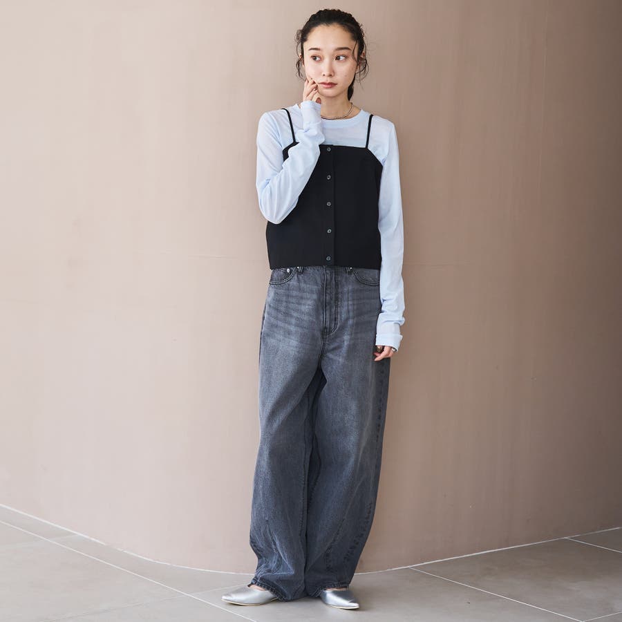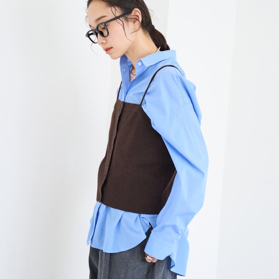シャツやTシャツのインナーとしてはもちろん、同素材の襟付きカーディガンと合わせることで、より今年らしいスタイリングが完成します。