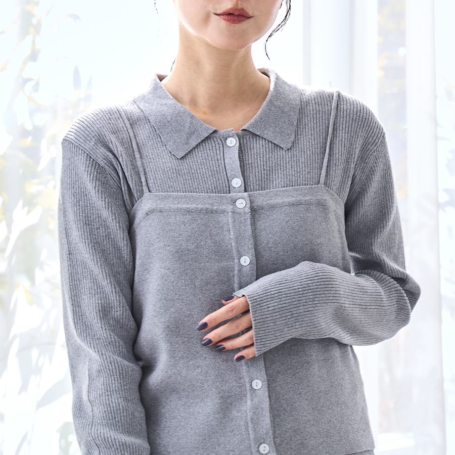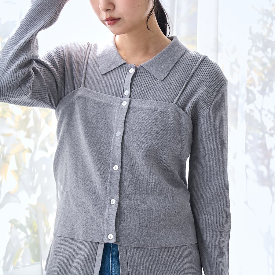 襟付きリブ編みカーディガン(品番:76376000015)