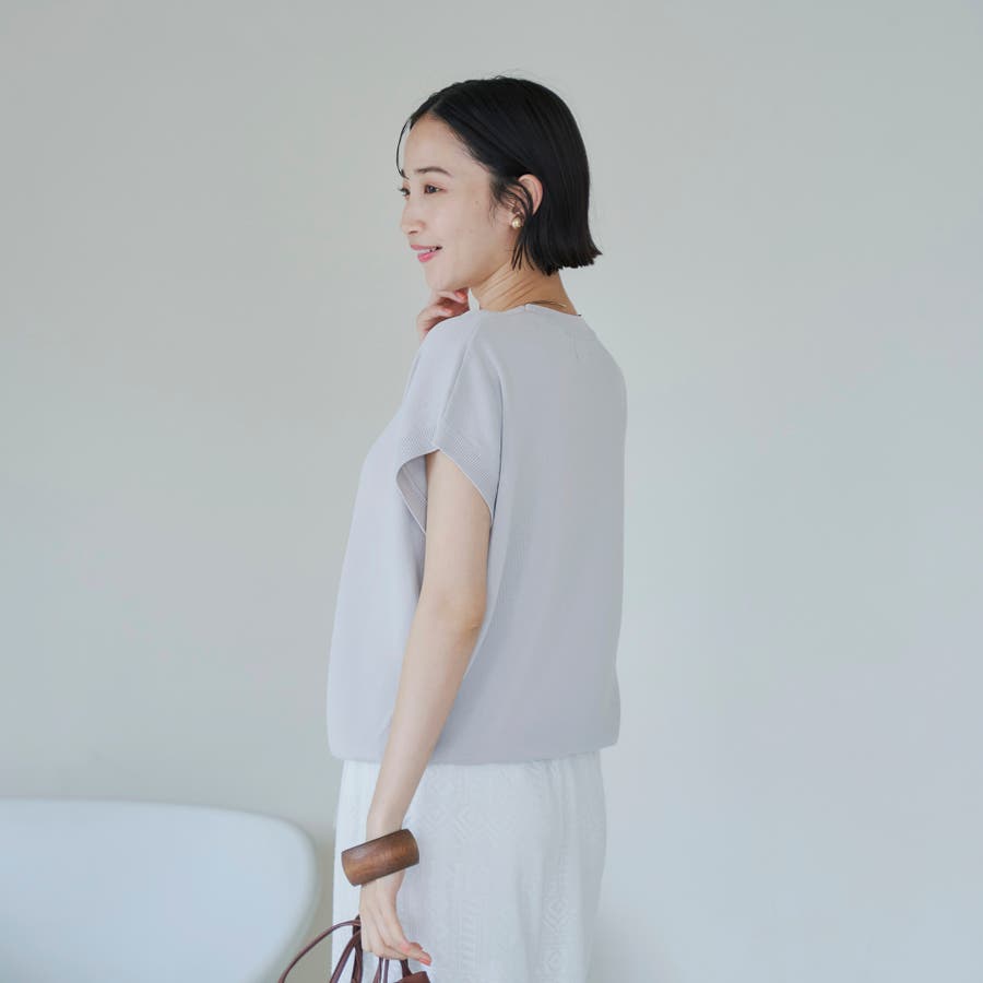 フェミニンなフレンチスリーブのニットプルオーバー。