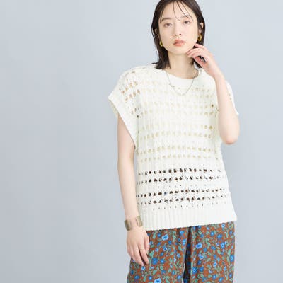 コットン素材のテープヤーンを使用した透かし編みが、コーディネートに軽さをプラスしてくれるニットベスト。