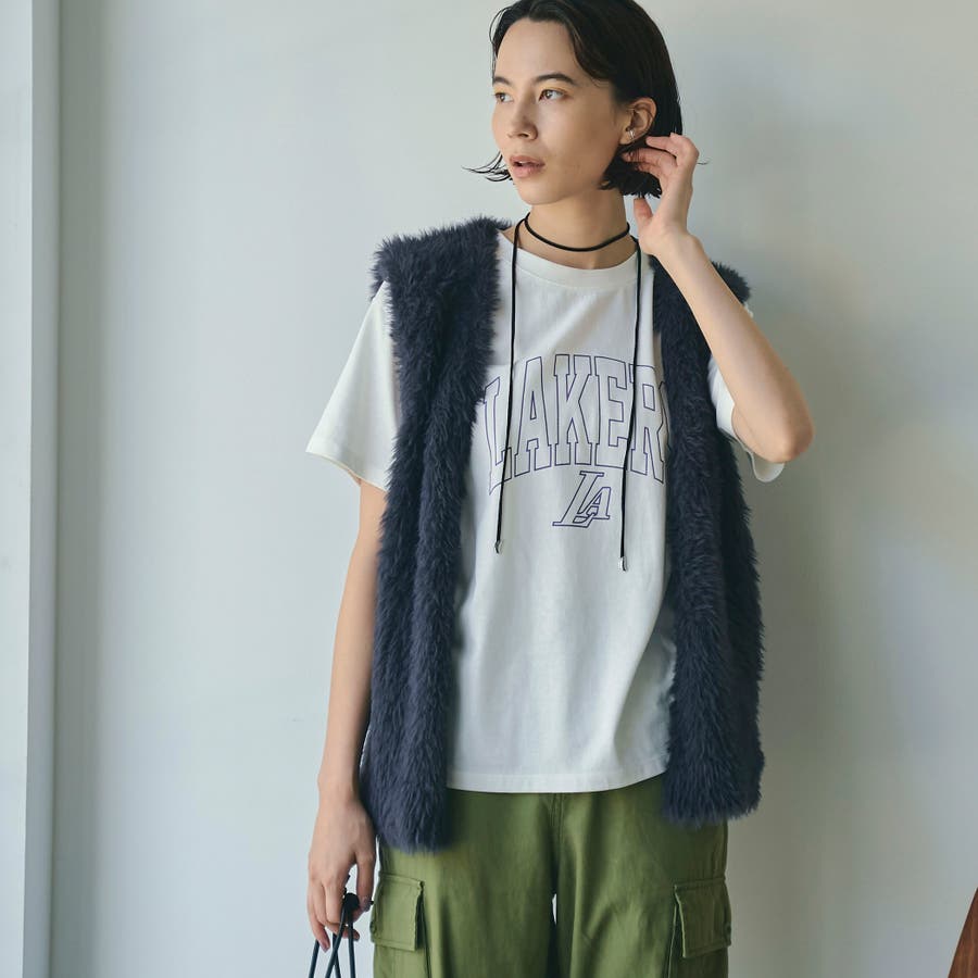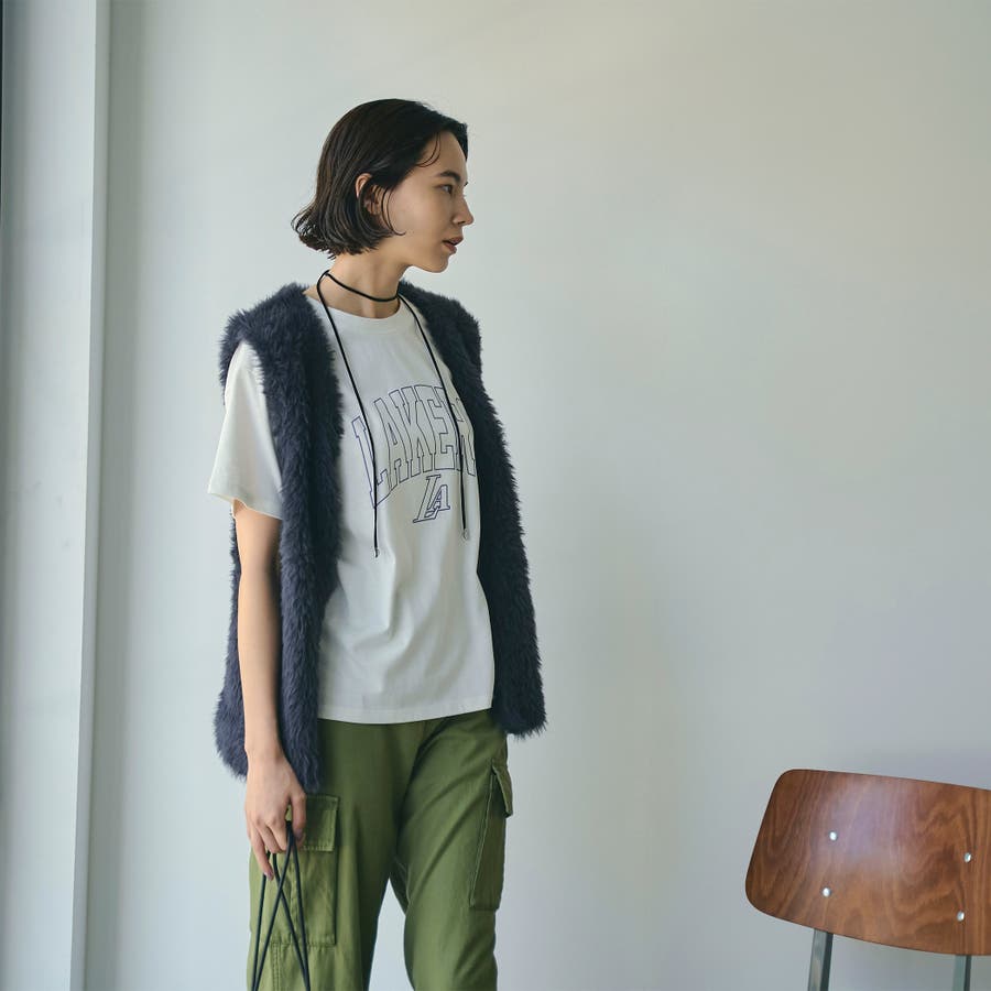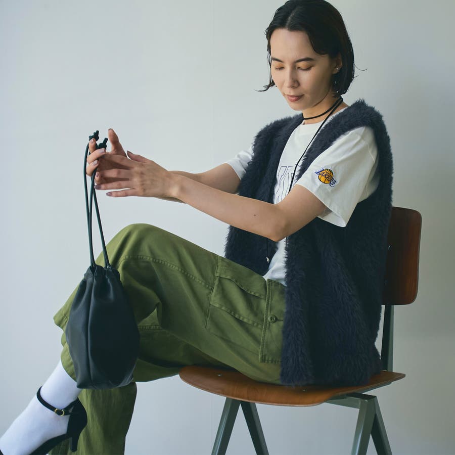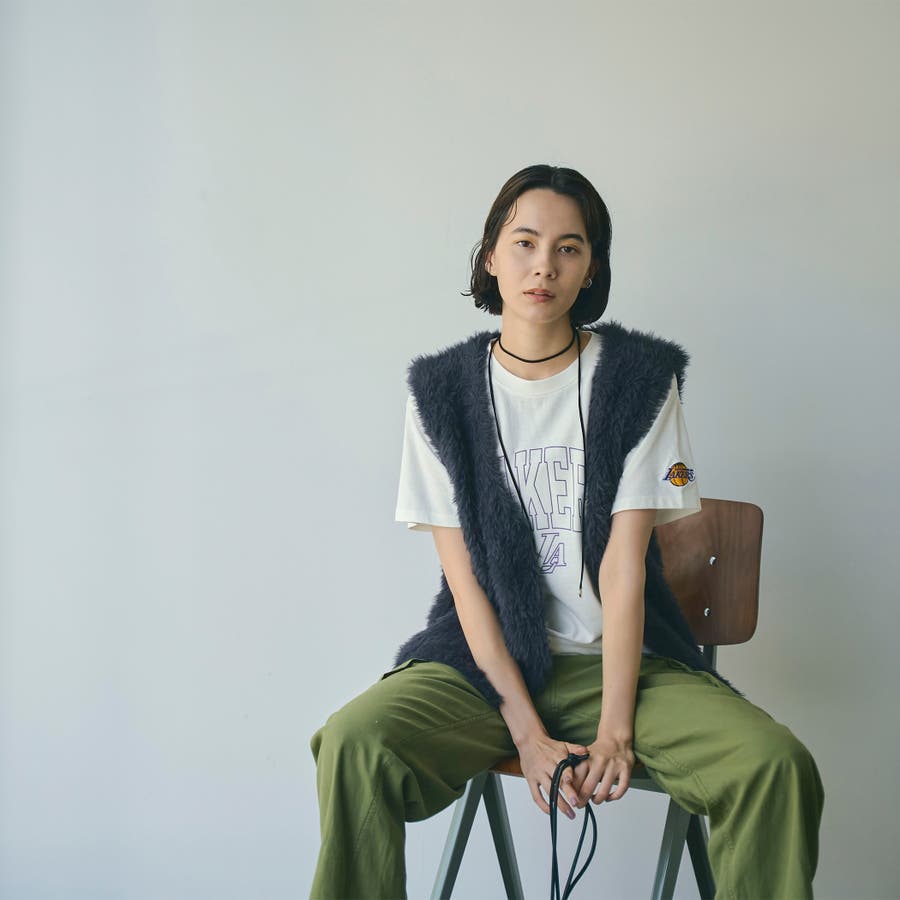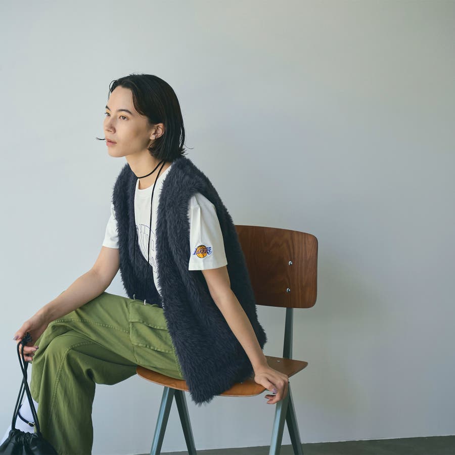 カーブデニムやカーゴパンツなどメンズライクなボトムスとのコーディネートもおすすめ。