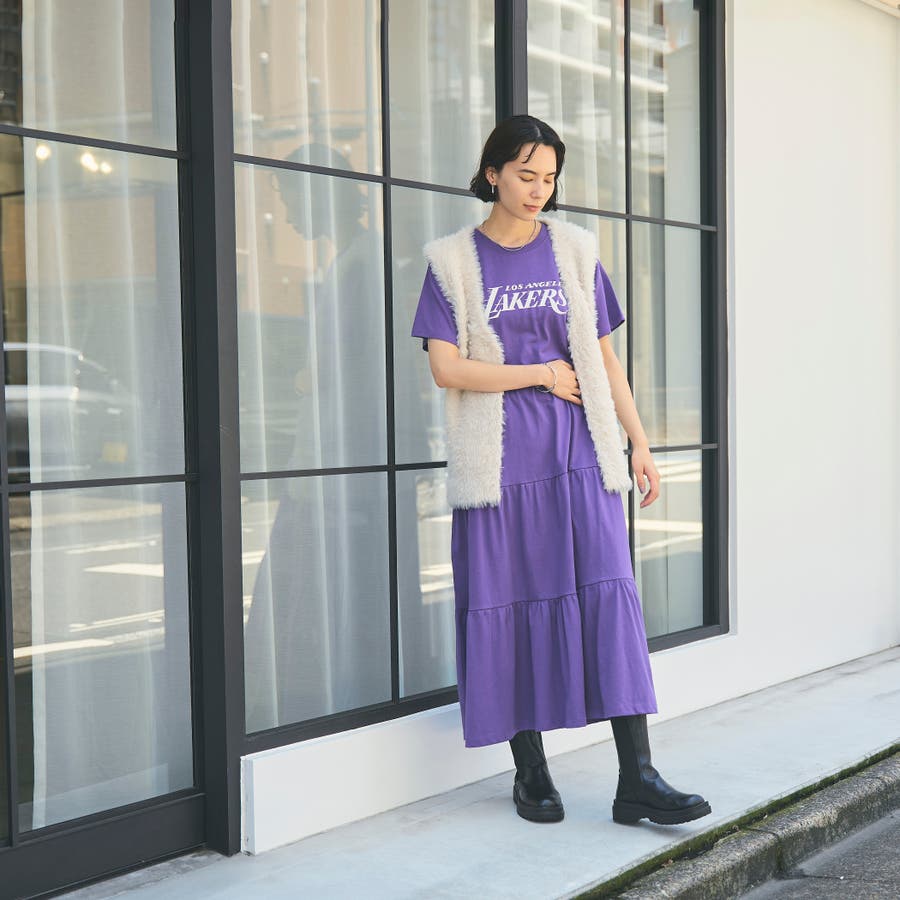 晩夏はノースリーブとして、秋冬はロンT やタートルネックのトップスと合わせてとロングシーズン着ていただけます。