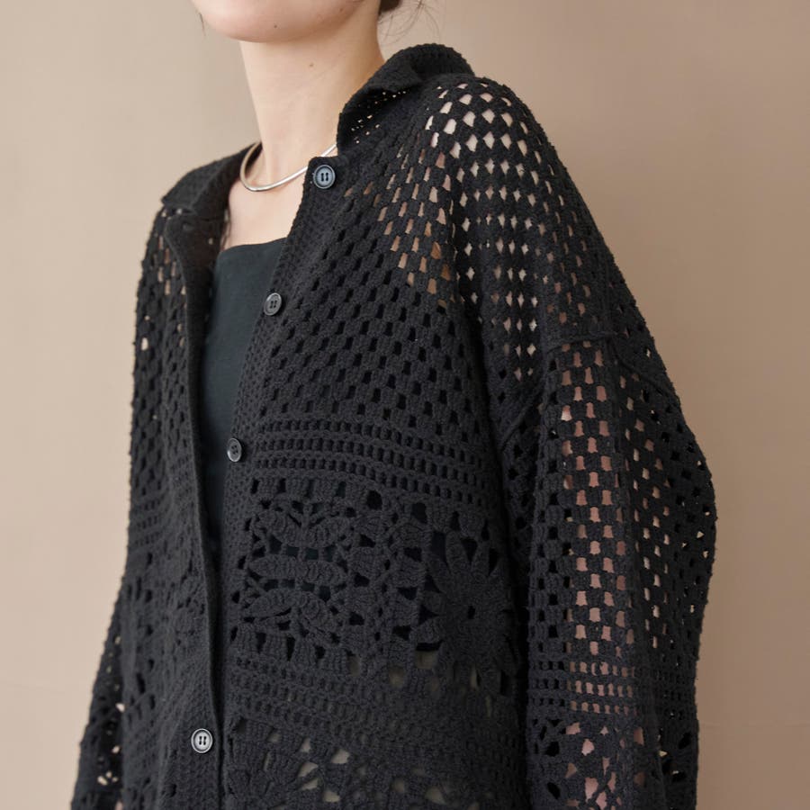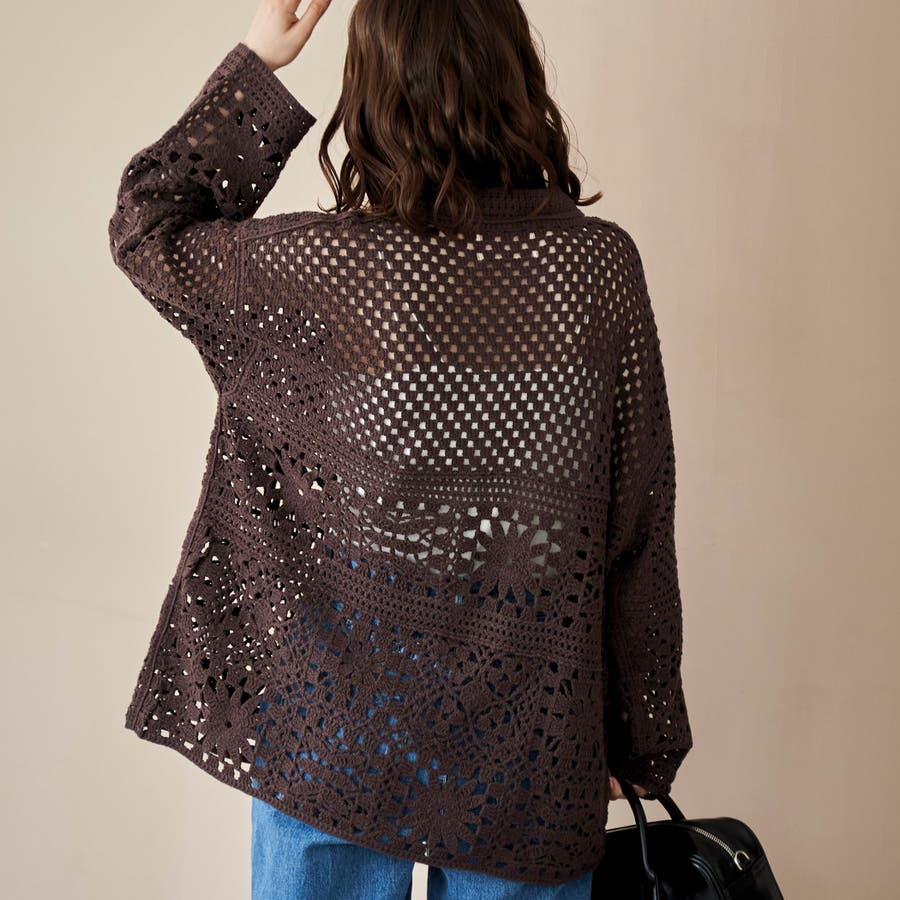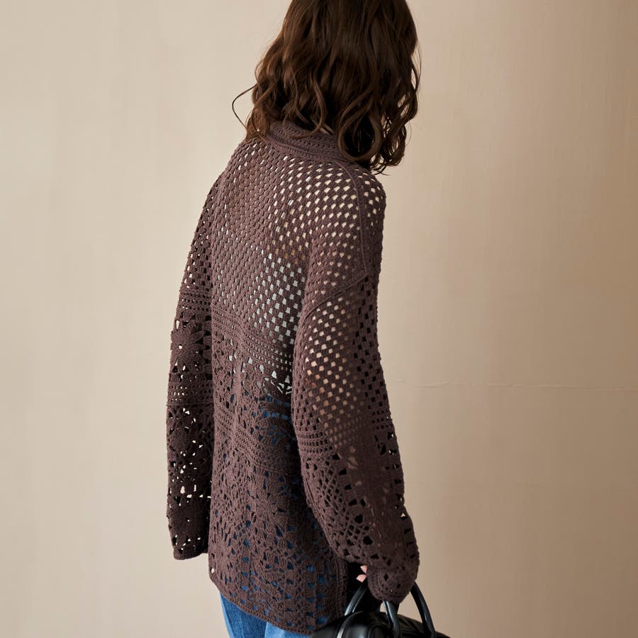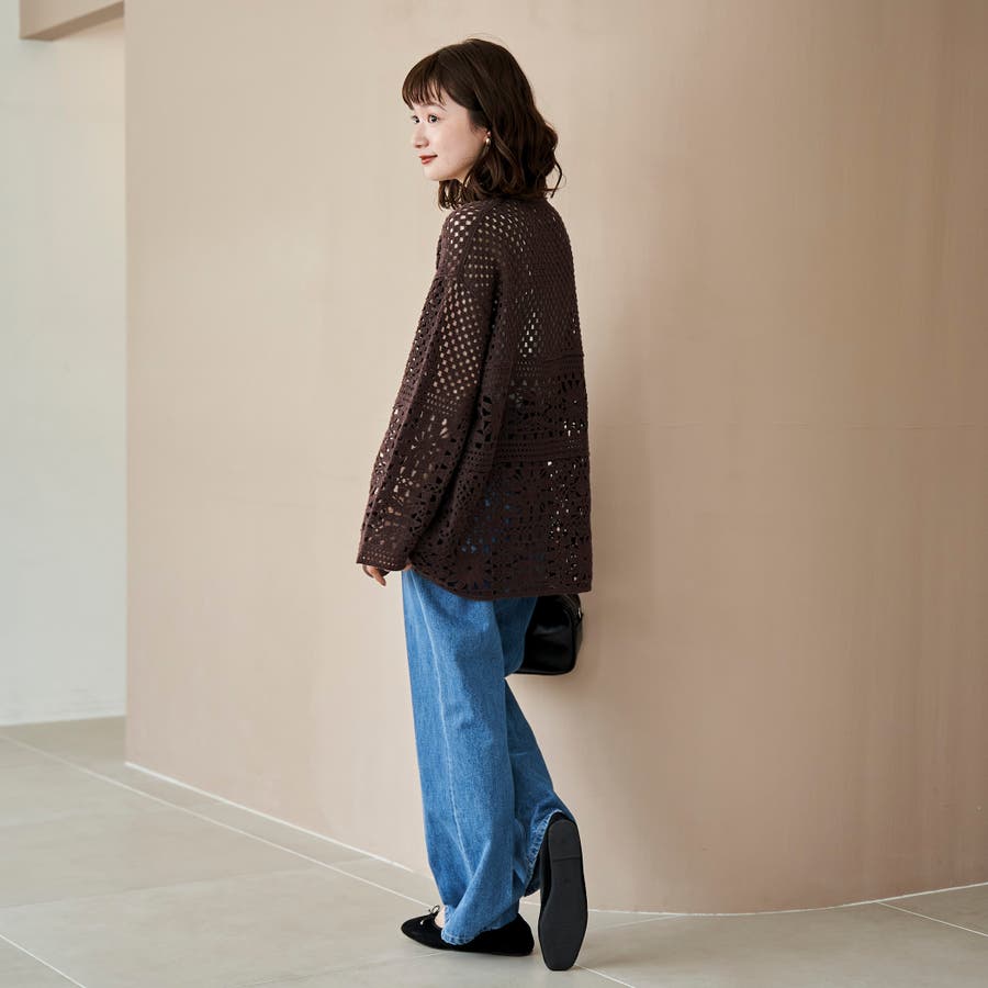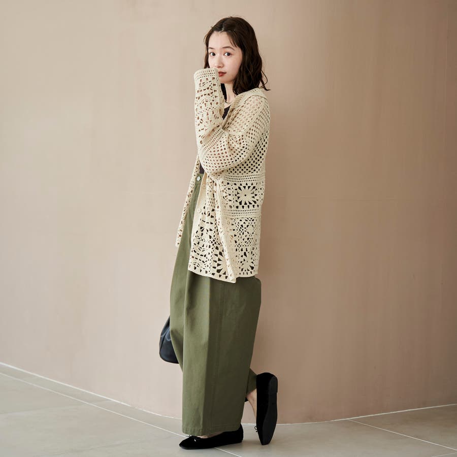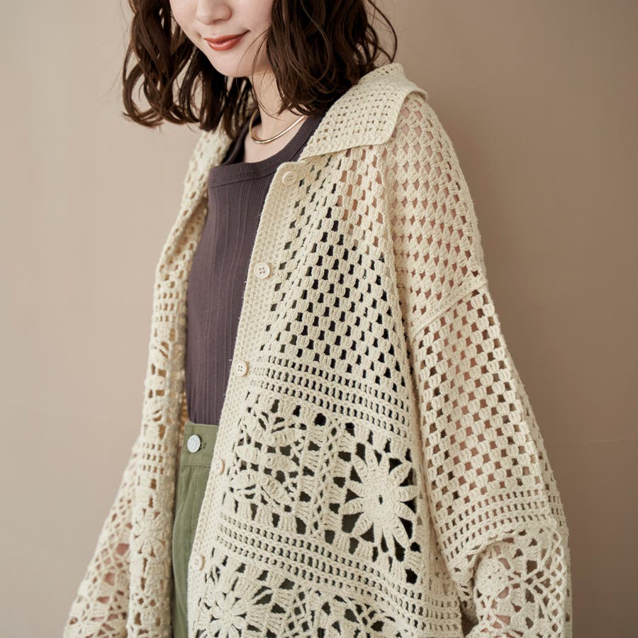 襟付きで今年らしさを感じるクロシェカーディガン。