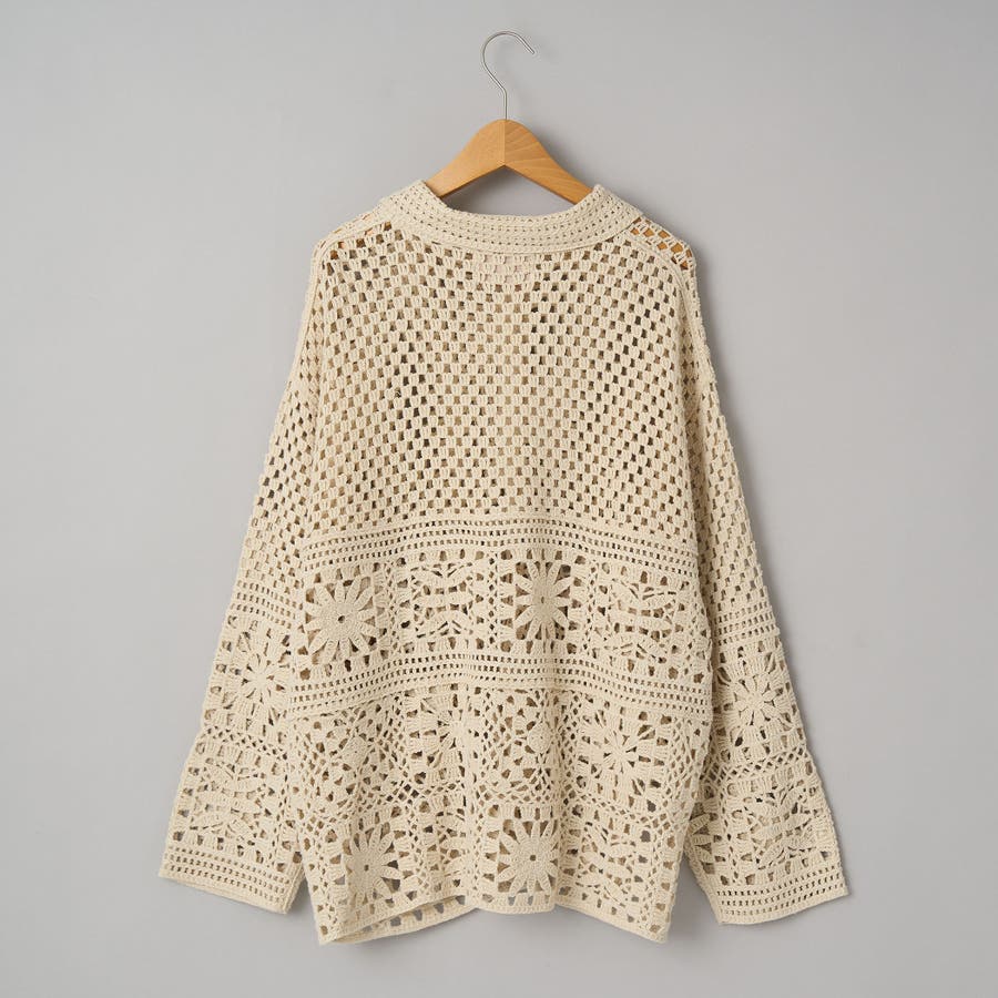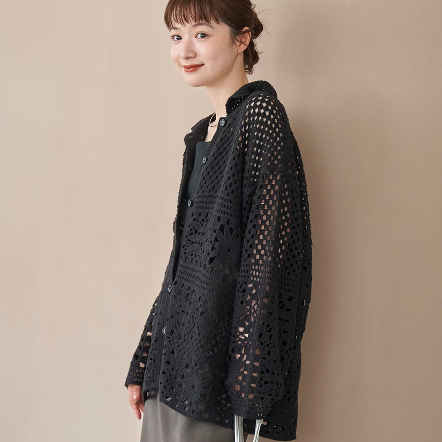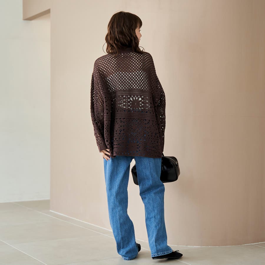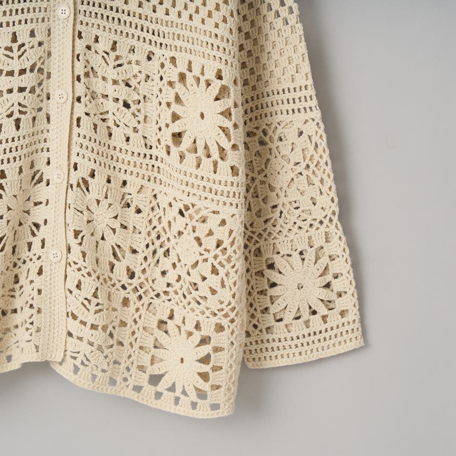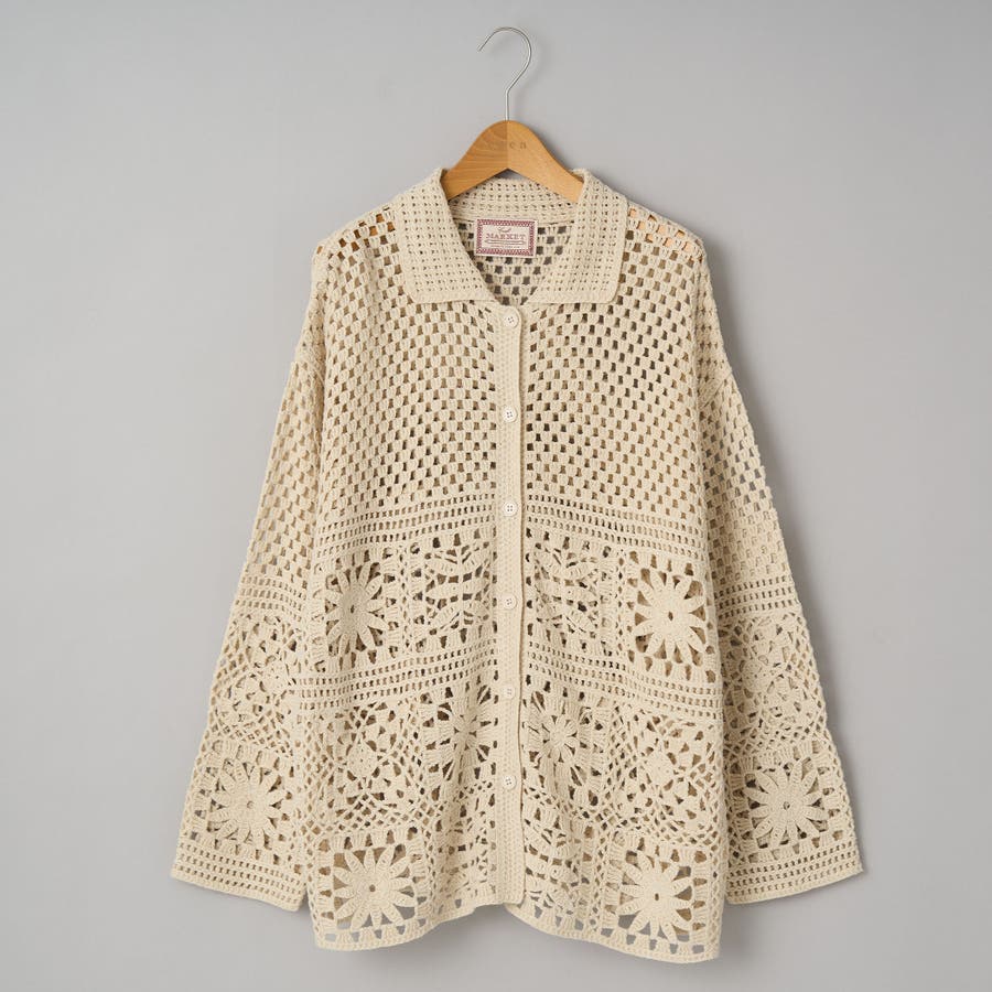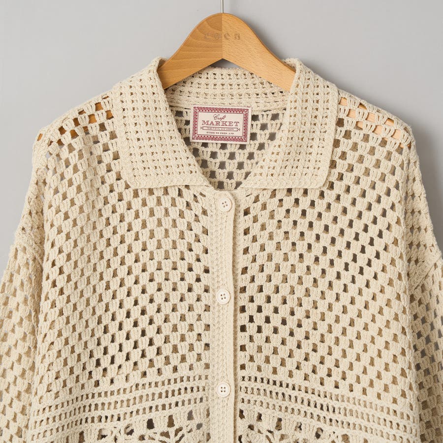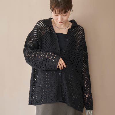 襟付きで今年らしさを感じるクロシェカーディガン。