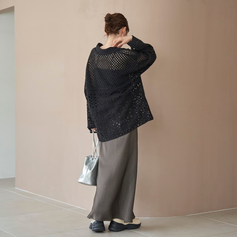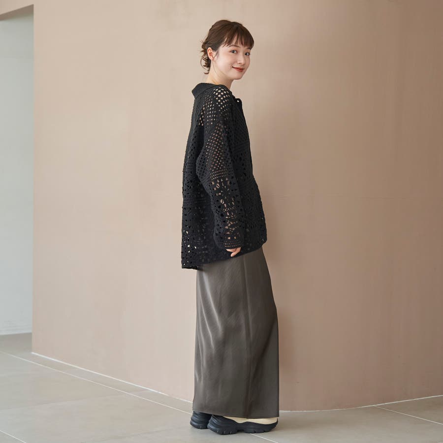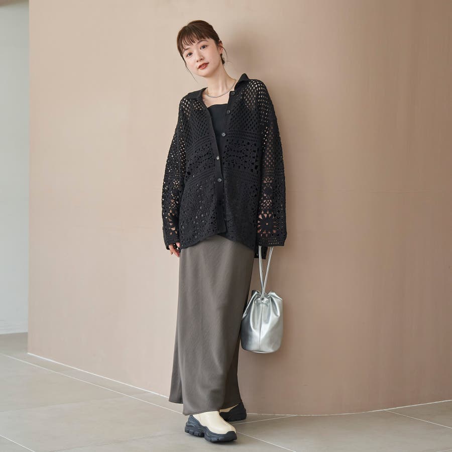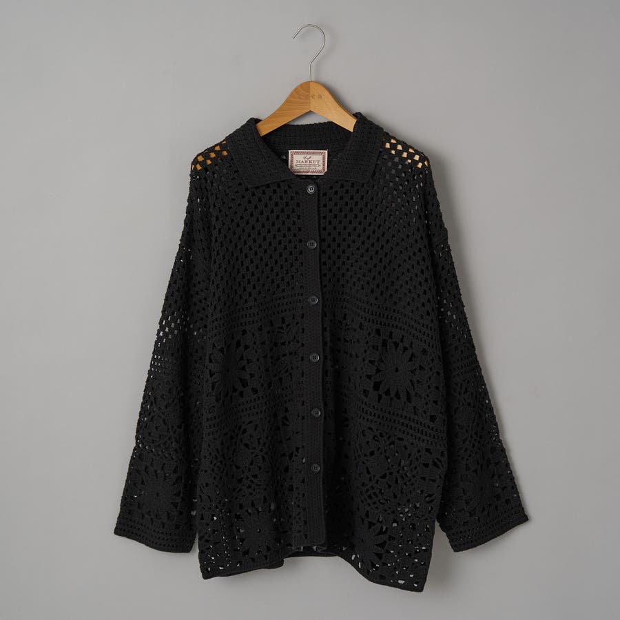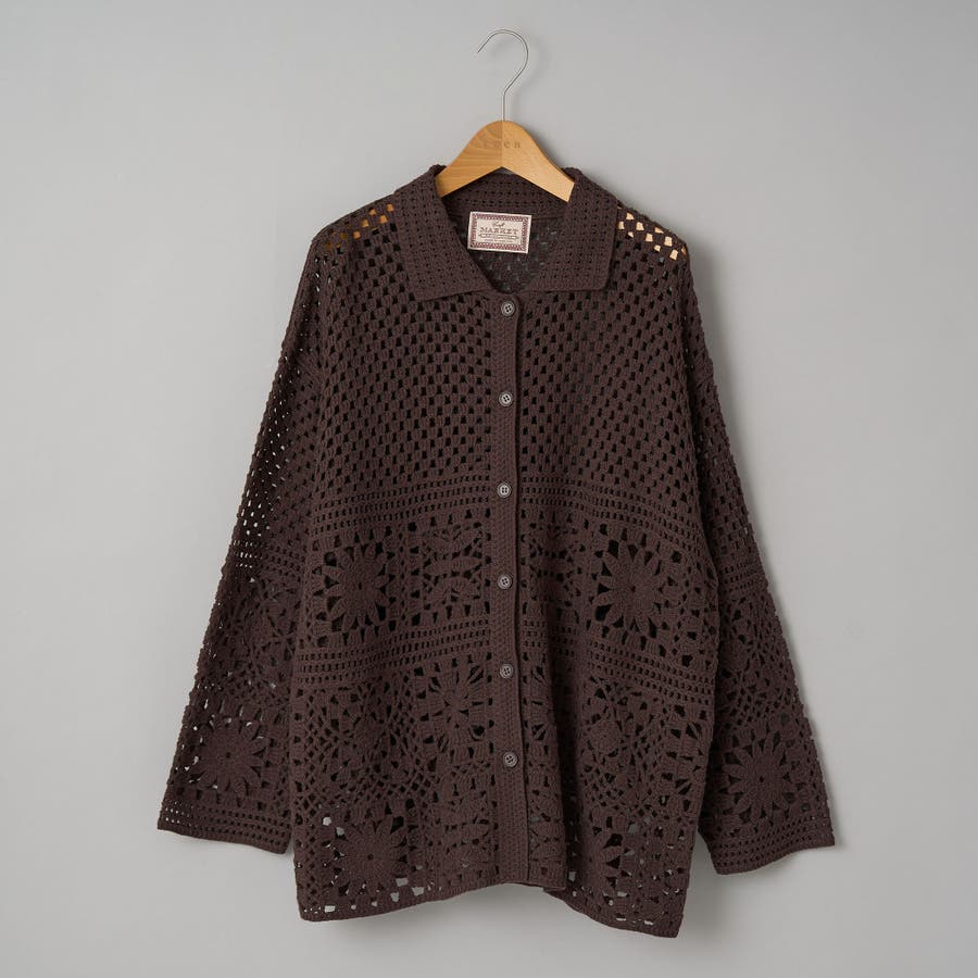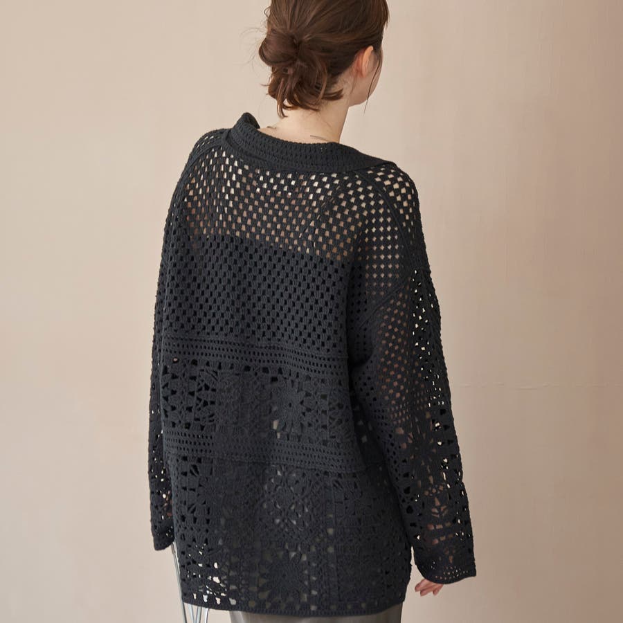 襟付きで今年らしさを感じるクロシェカーディガン。
