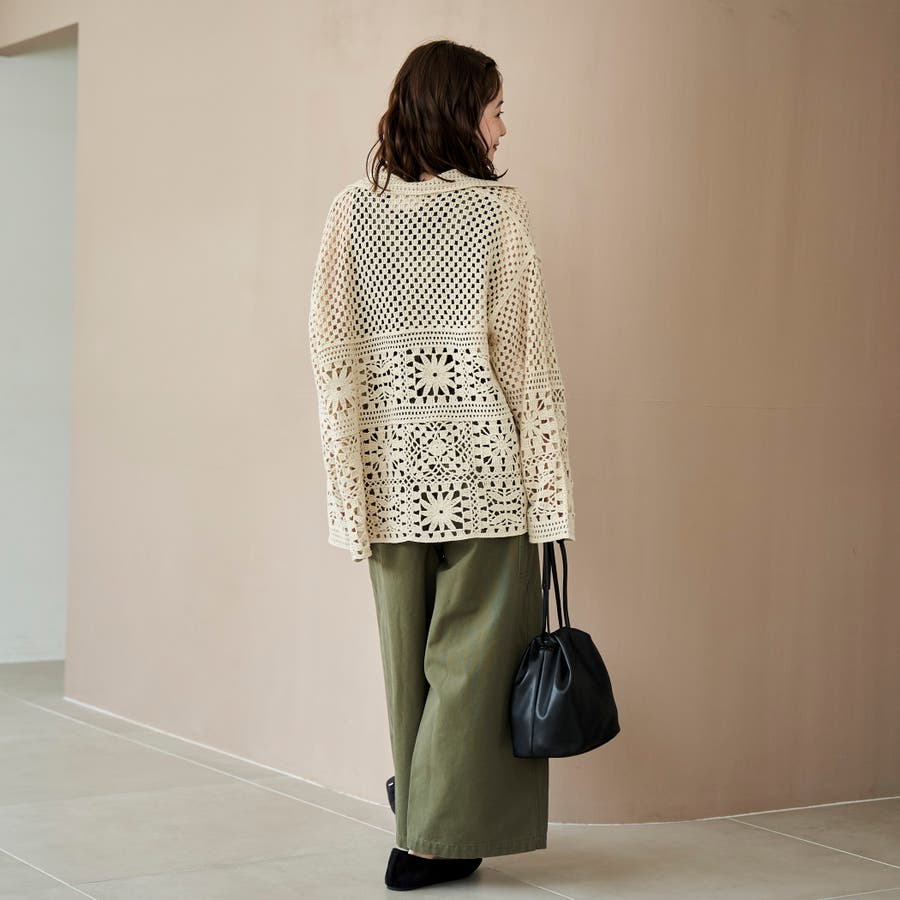 今年らしい襟付きクロシェで、軽やか秋コーデ