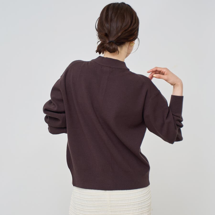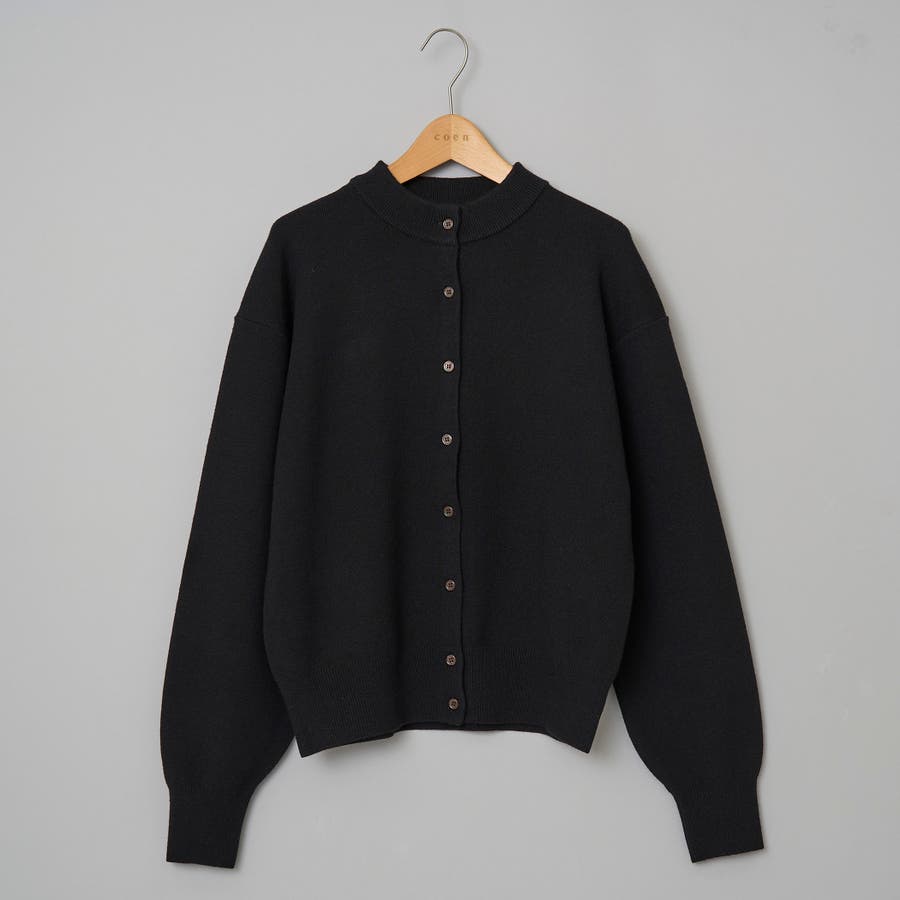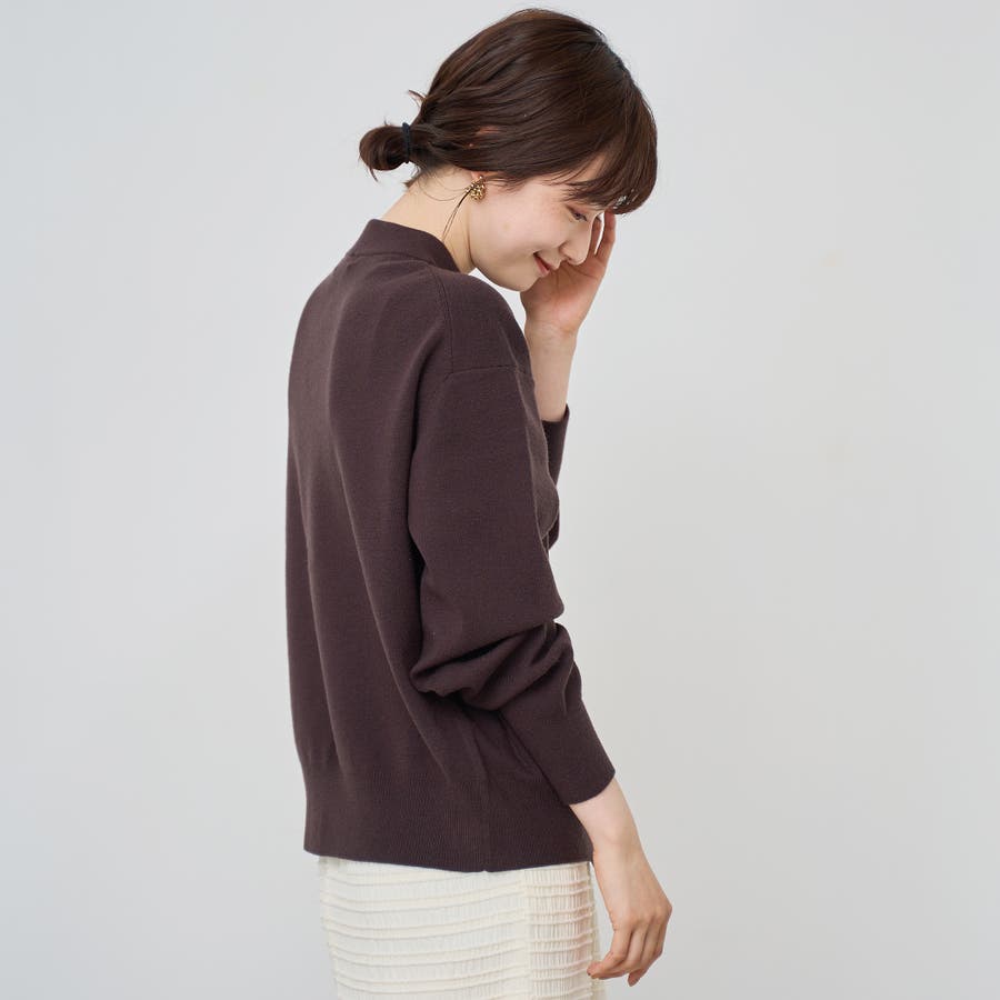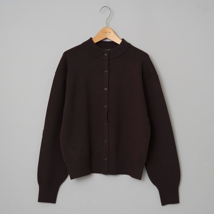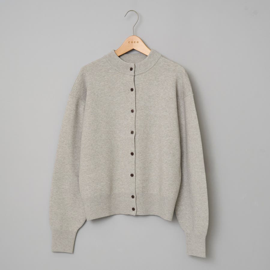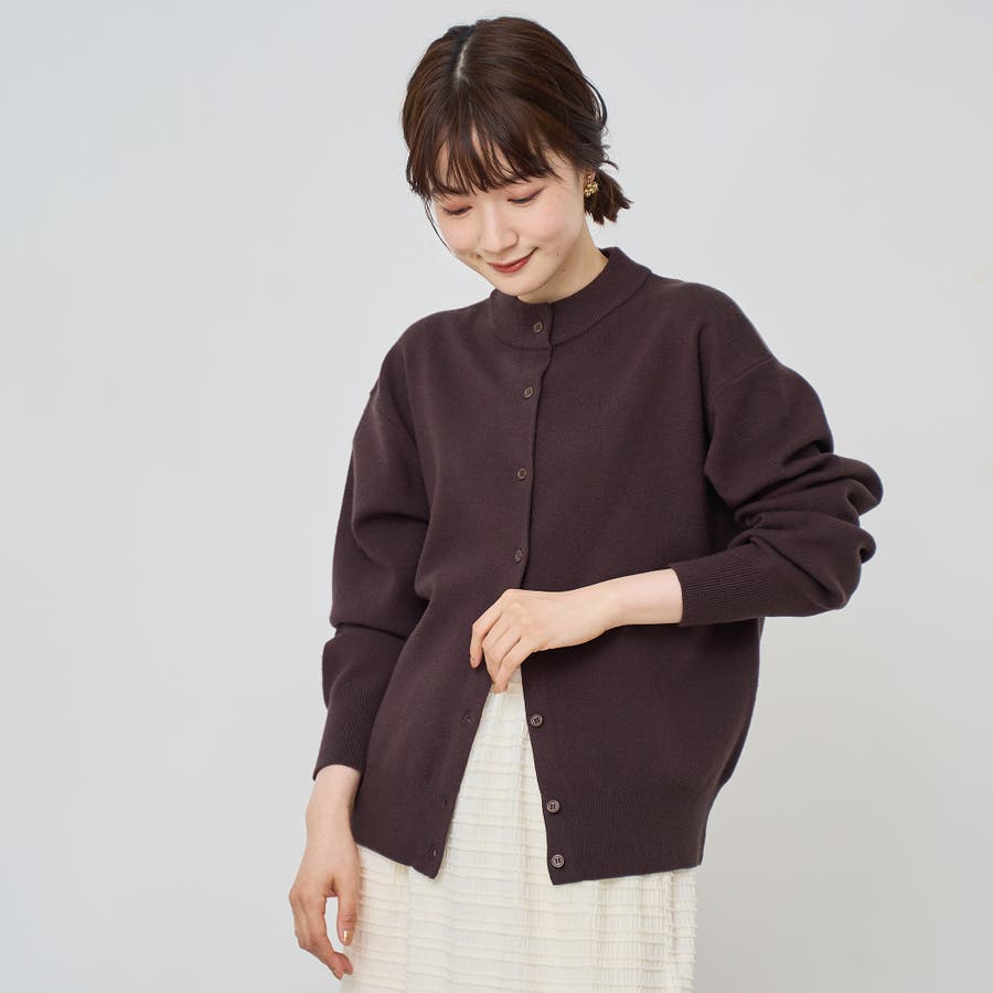 もちもちとした風合いが特徴のモックネックニットカーディガン。