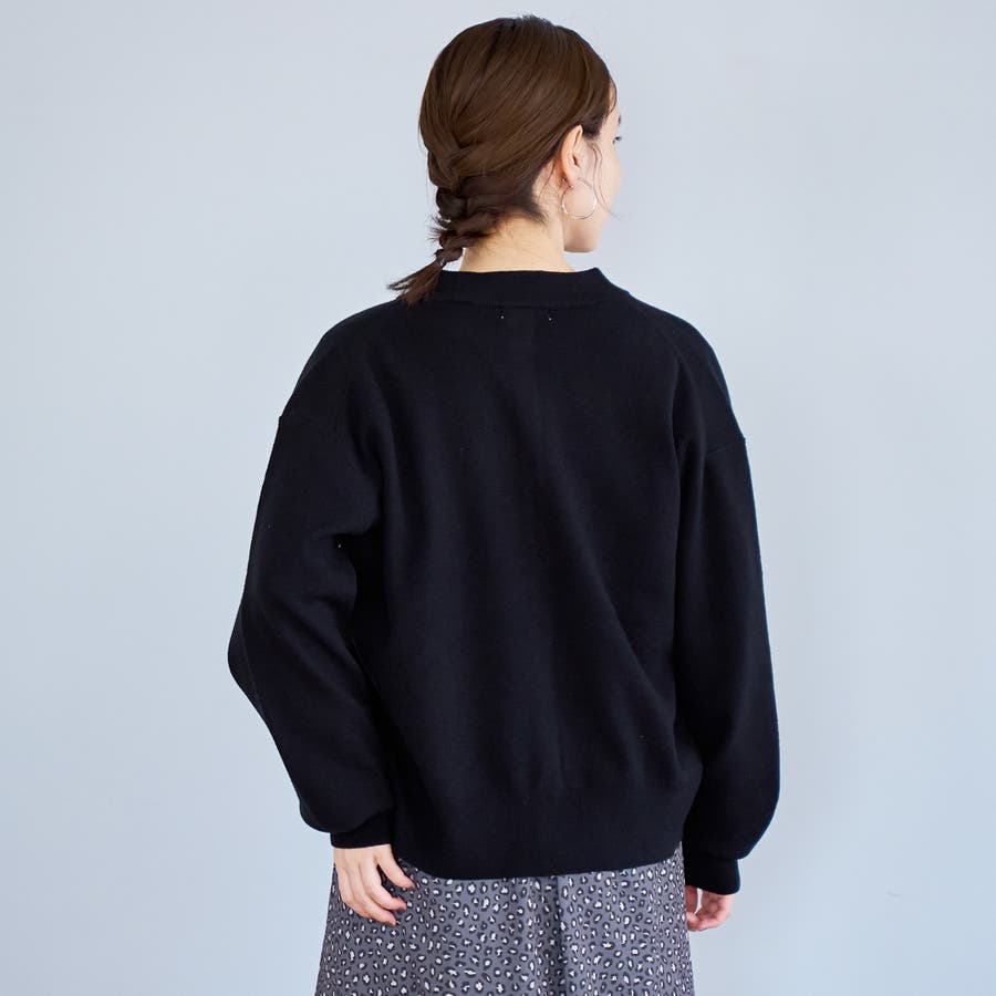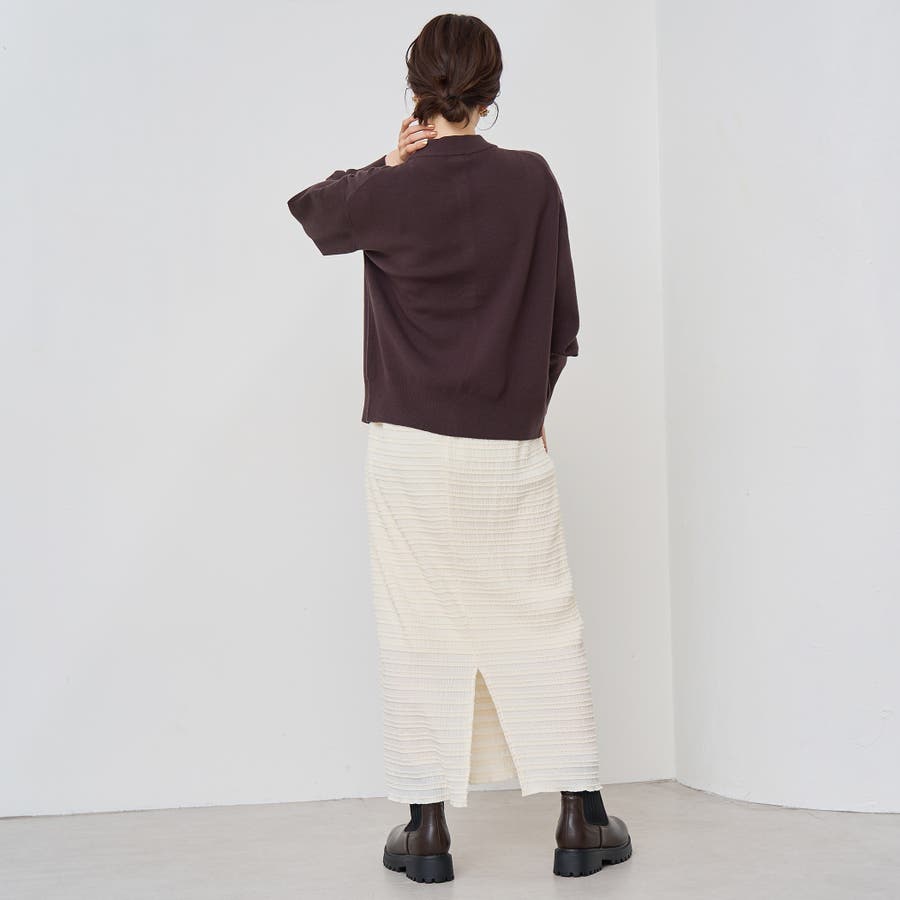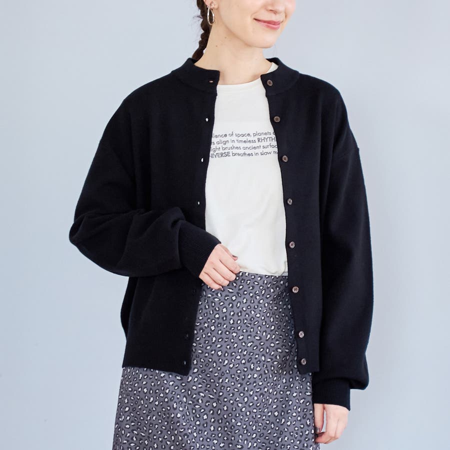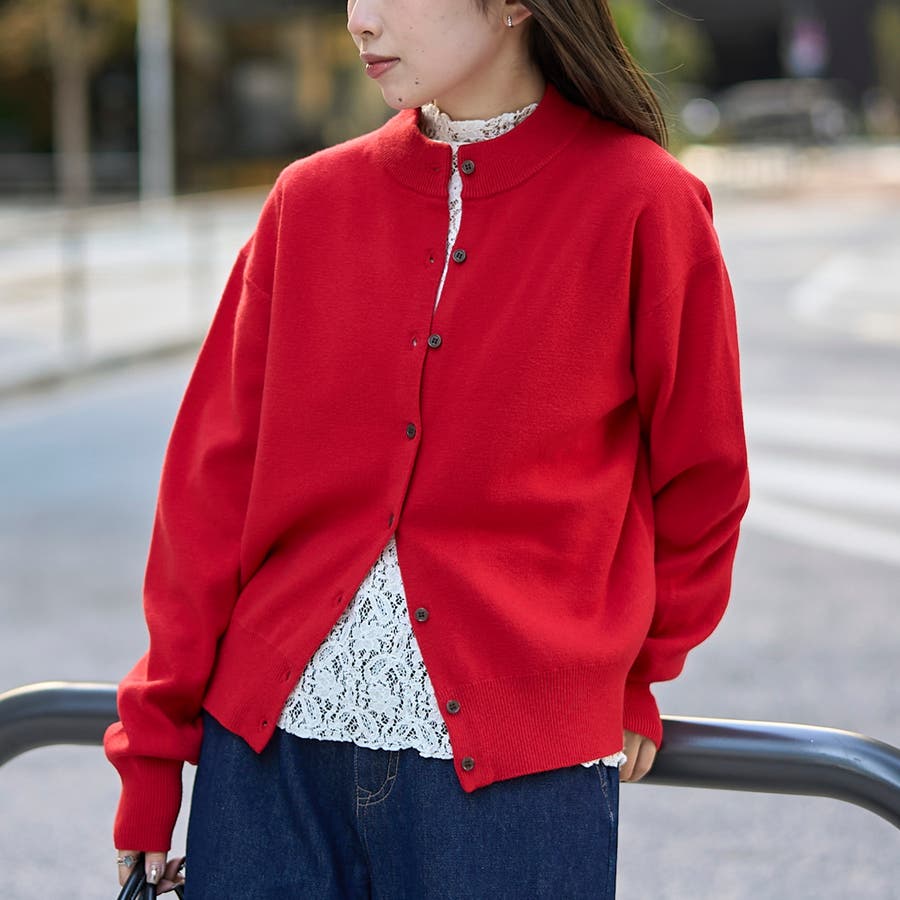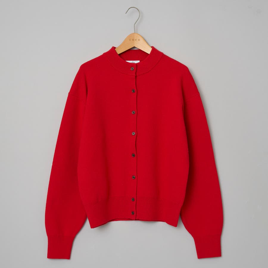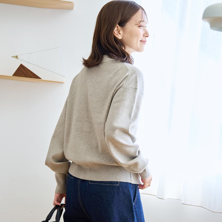 もちもちとした風合いが特徴のモックネックニットカーディガン。