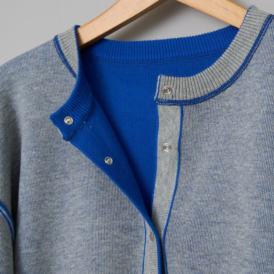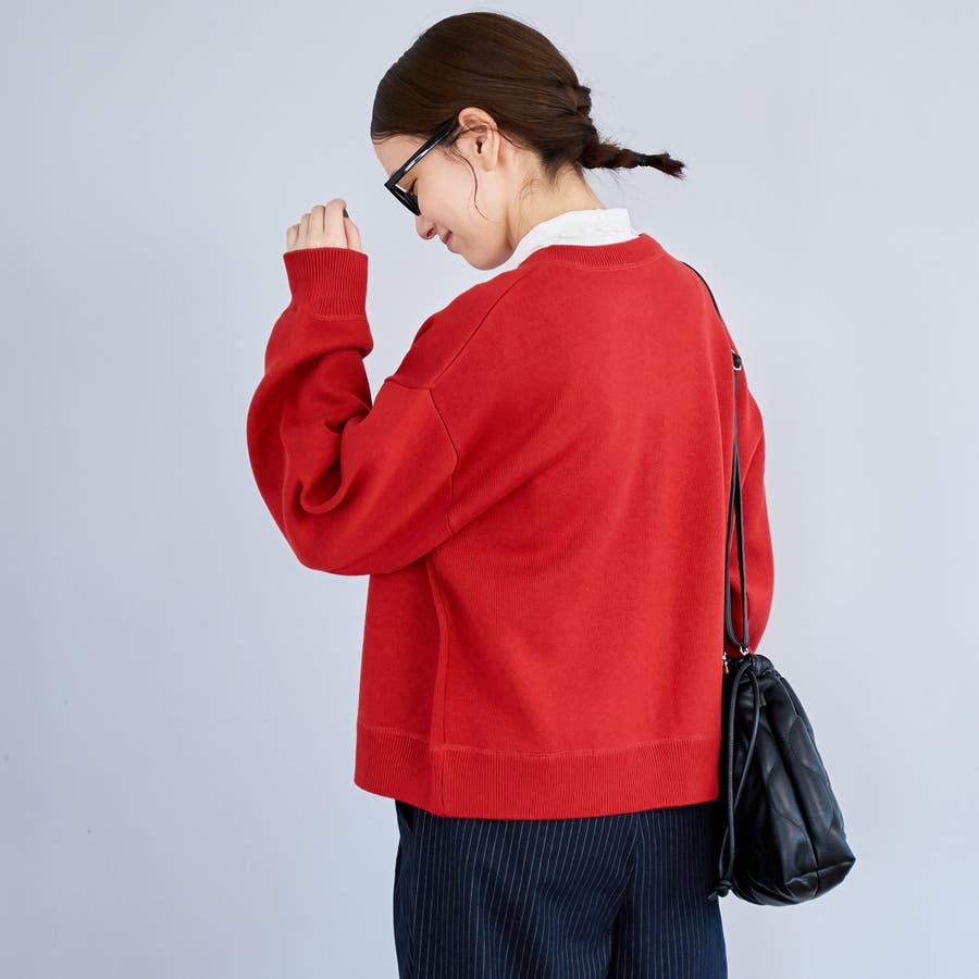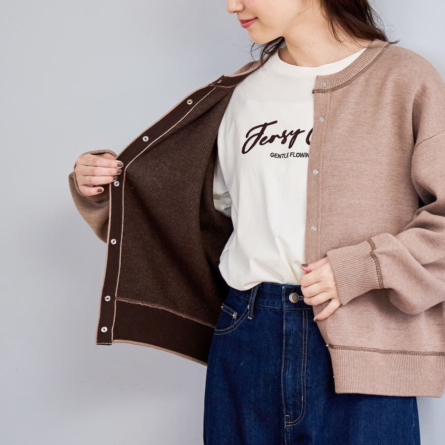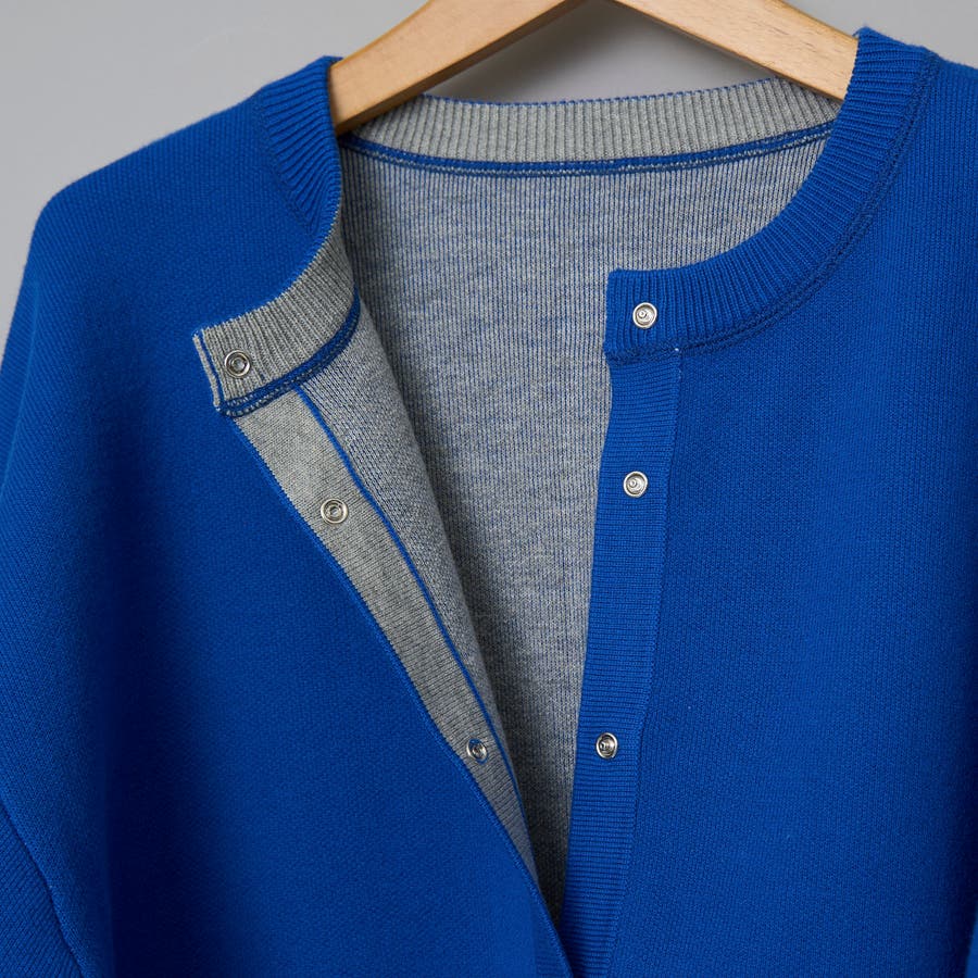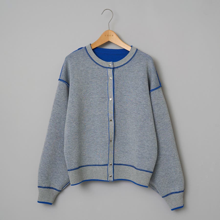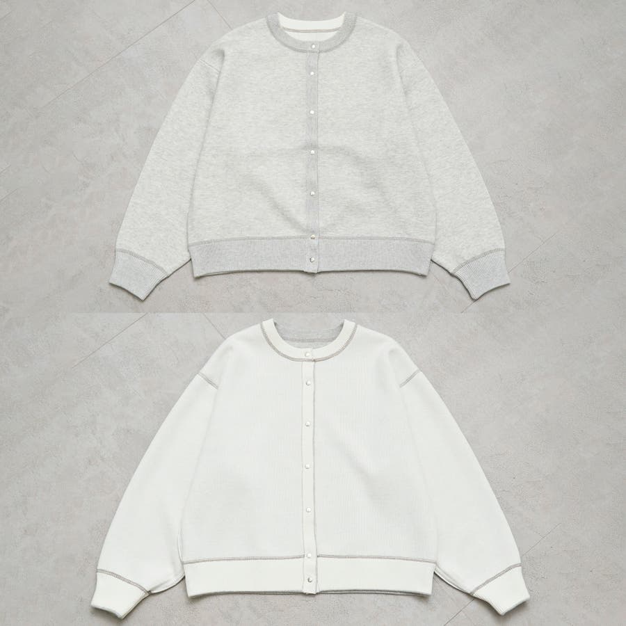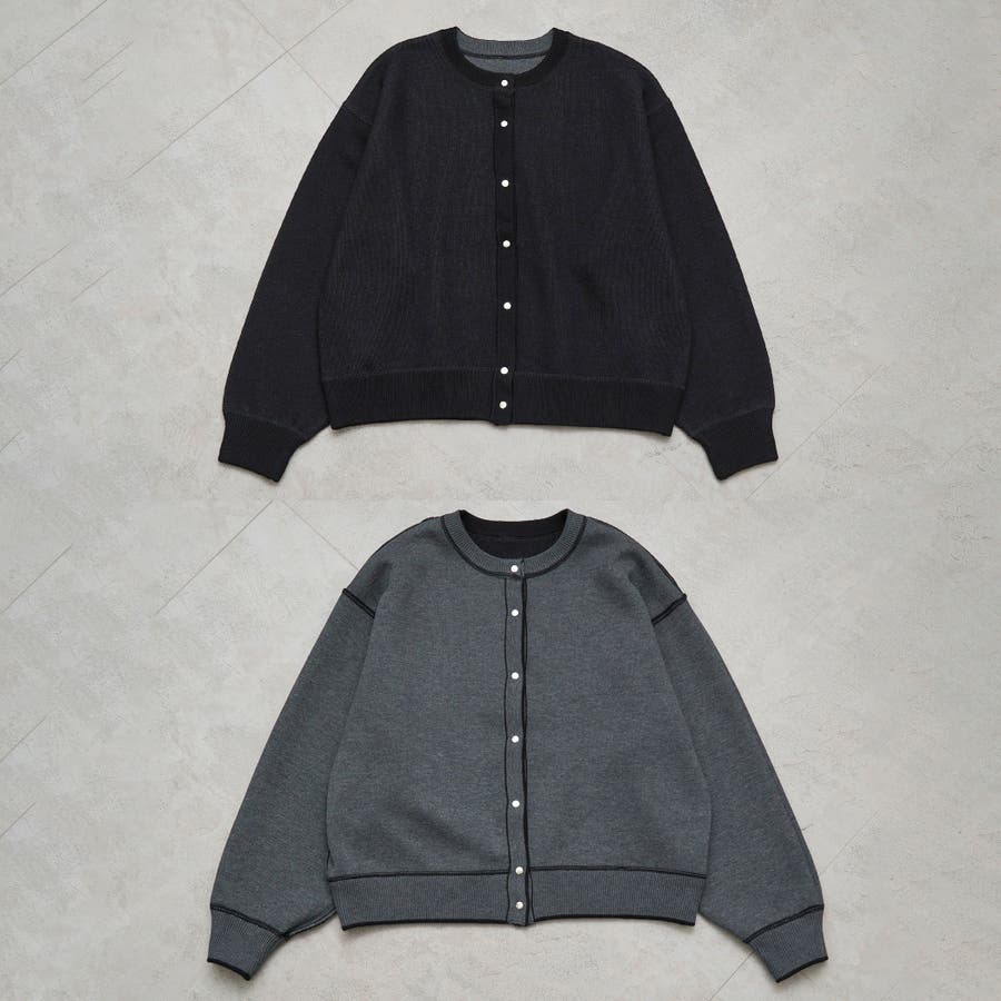 スウェットのような柔らかさとニットならではの表情を併せ持つ、リラックス感たっぷりのリバーシブルスウェットライクニットカーディガン。