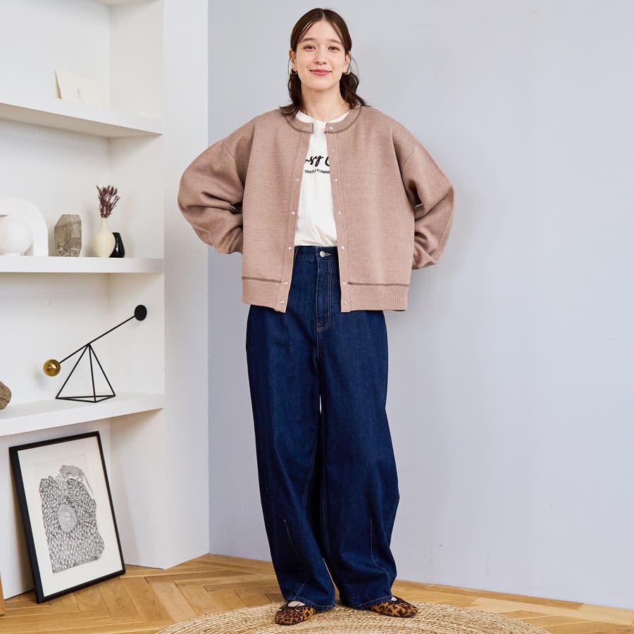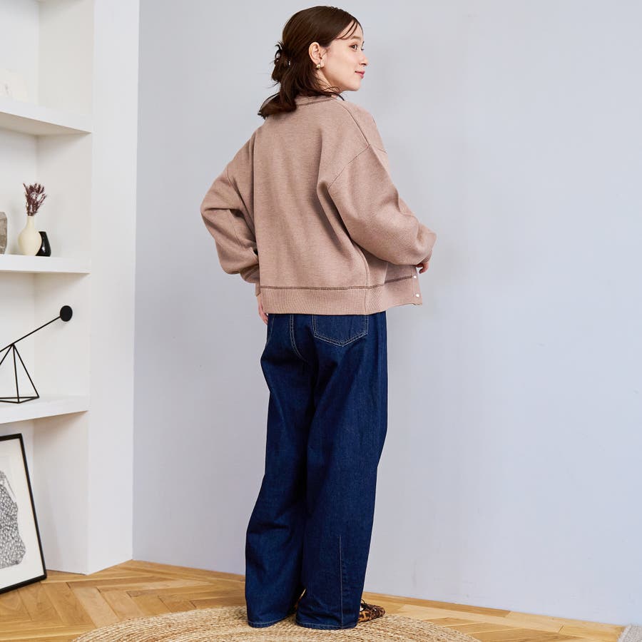 ゆったりとしたシルエットで抜け感を演出しつつ、フロントはスナップボタン仕様で着脱も簡単。
