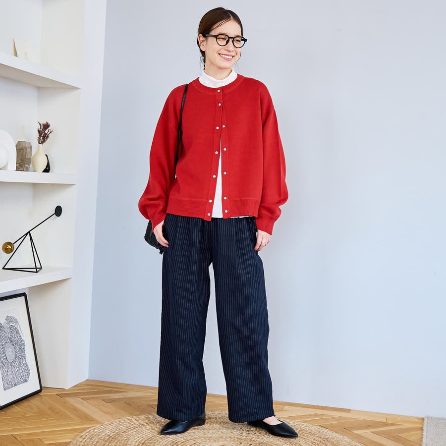 シンプルで合わせやすく、デイリーからちょっとしたお出かけまでシーンを選ばず活躍してくれる万能アイテムです。