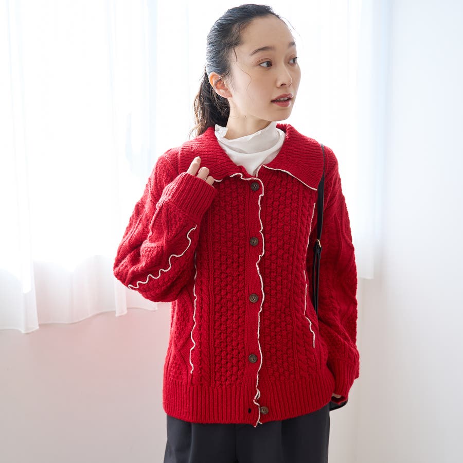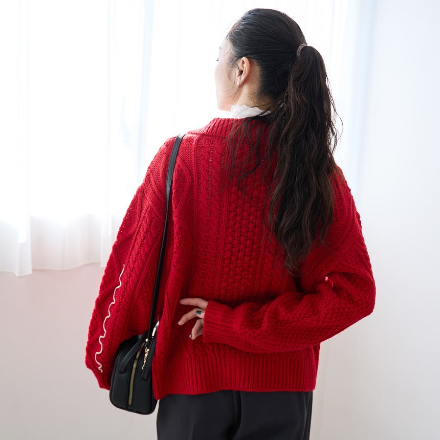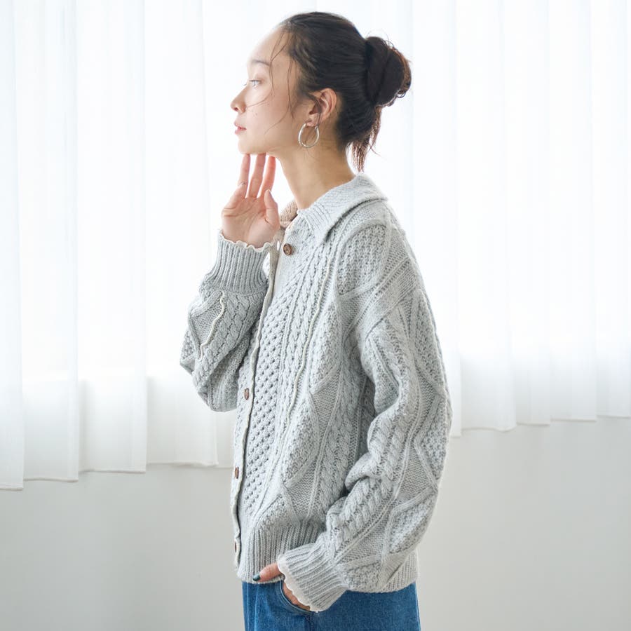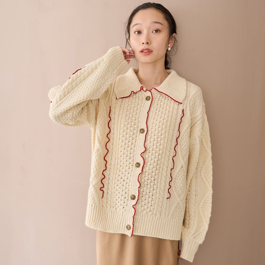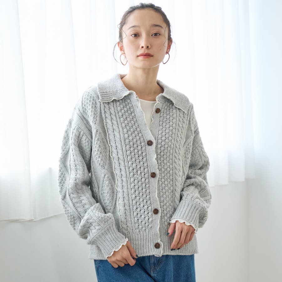 配色メローケーブル編みニット プルオーバー(品番:76306000009)