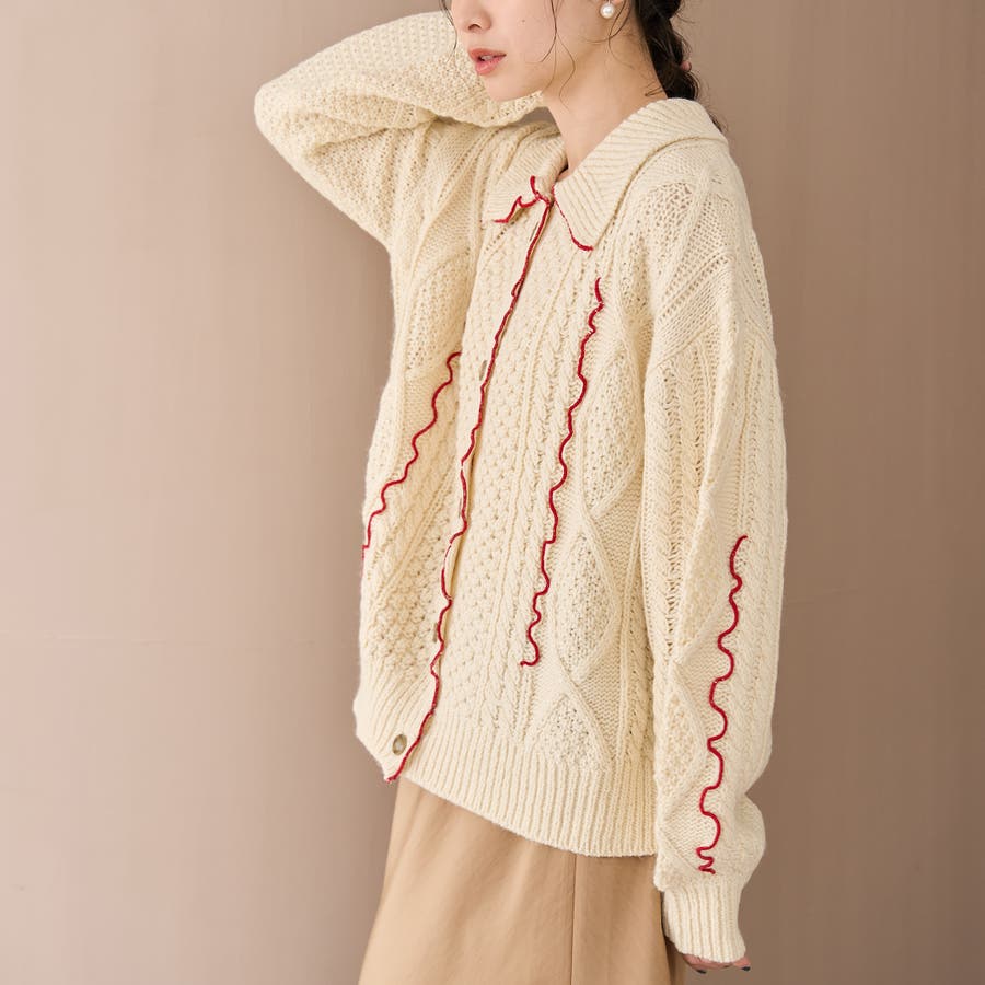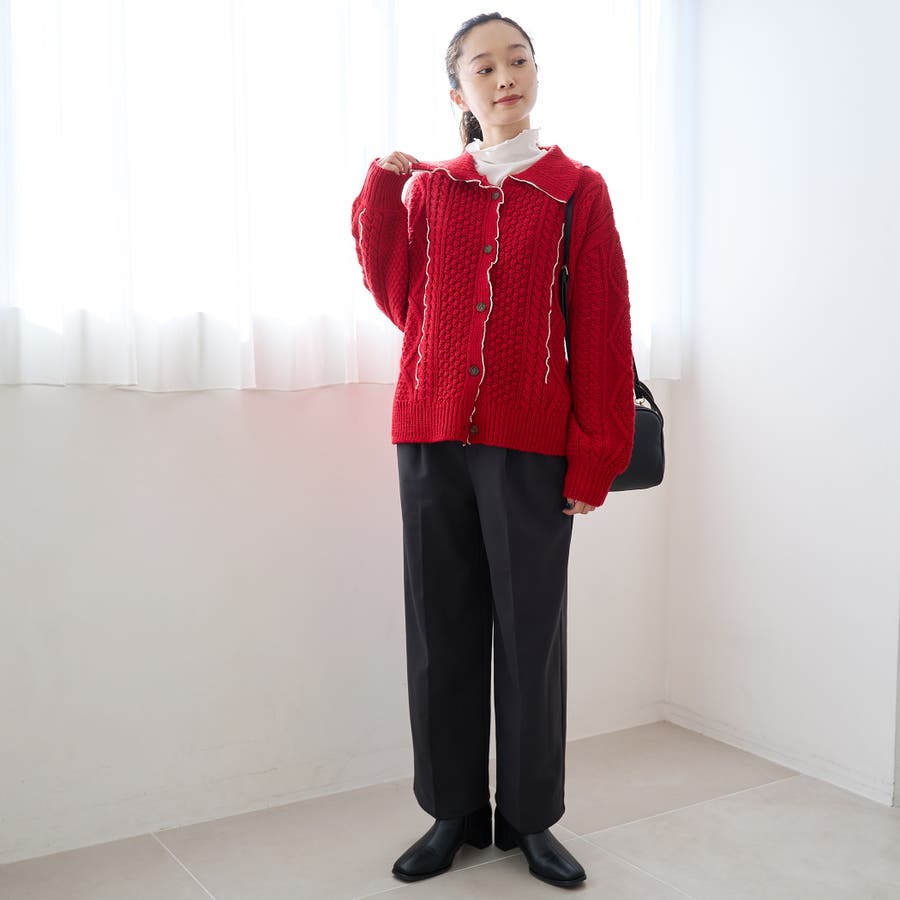 〇バイカラー配色×メロウデザインが映える存在感カーデ