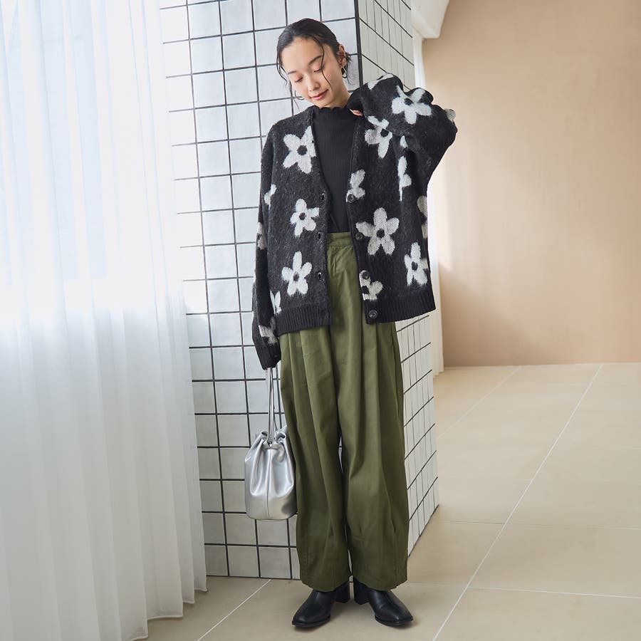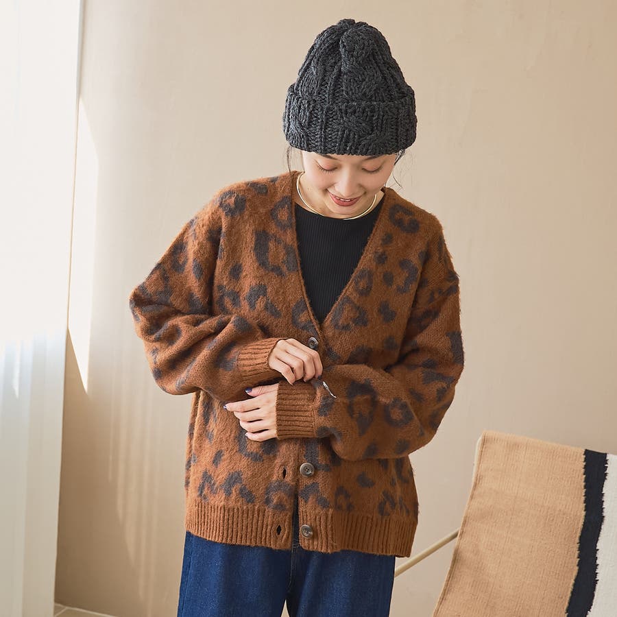 レオパード柄、花柄、アーガイル柄のトレンド感たっぷりな3柄展開で、コーデの主役になる1枚。