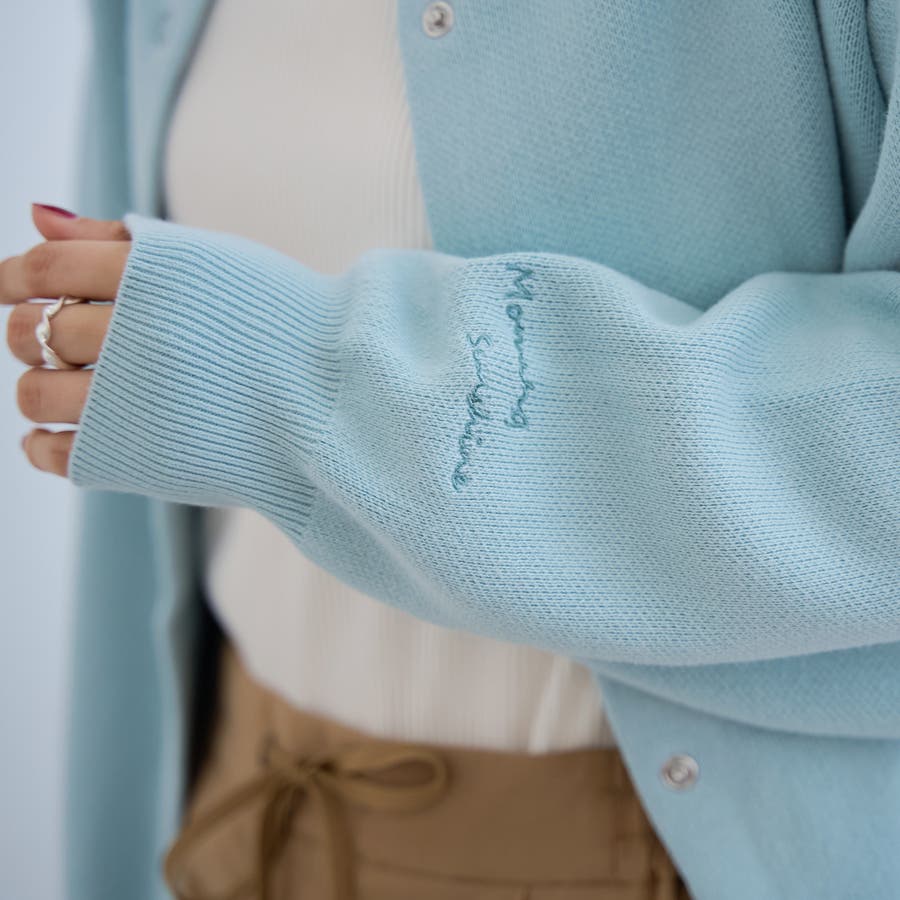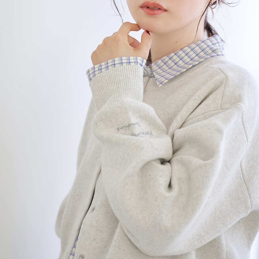 【選べる6色展開 スプリングカラー】袖刺繍 スウェットライクハイゲージニットカー…