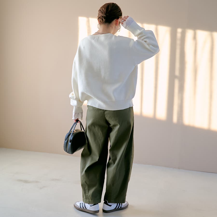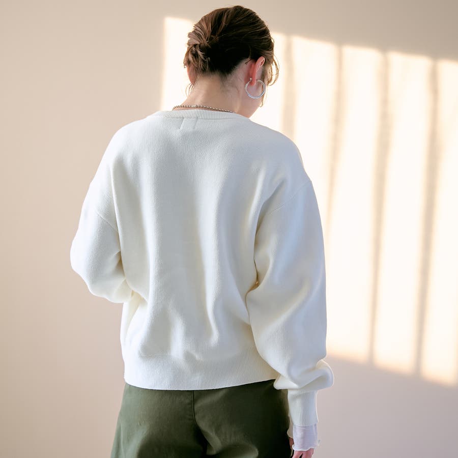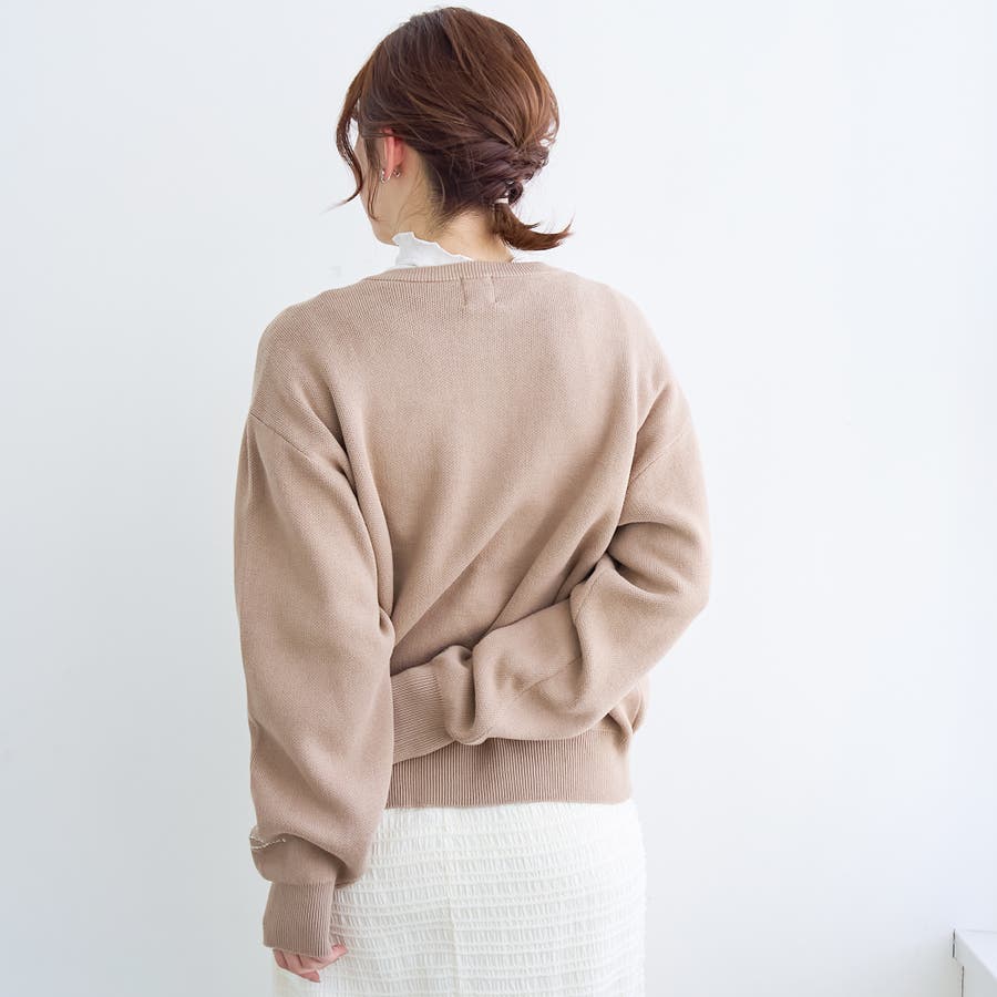 【選べる6色展開 / スプリングカラー】袖刺繍 スウェットライクハイゲージニット(品番:76306000021)