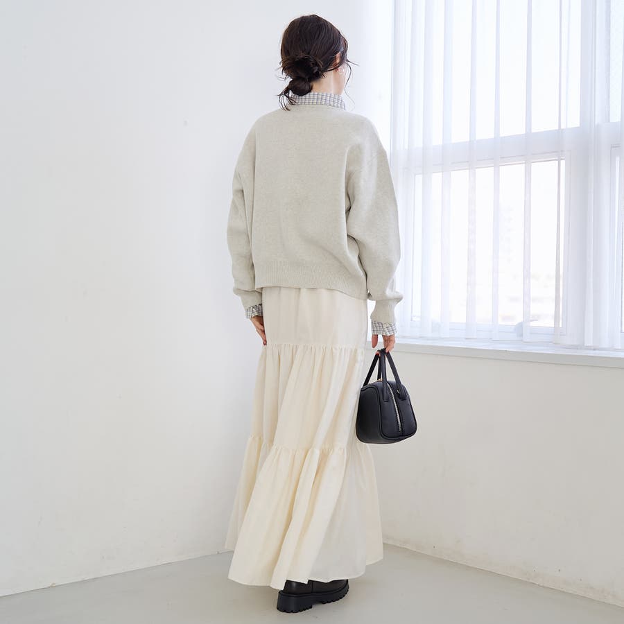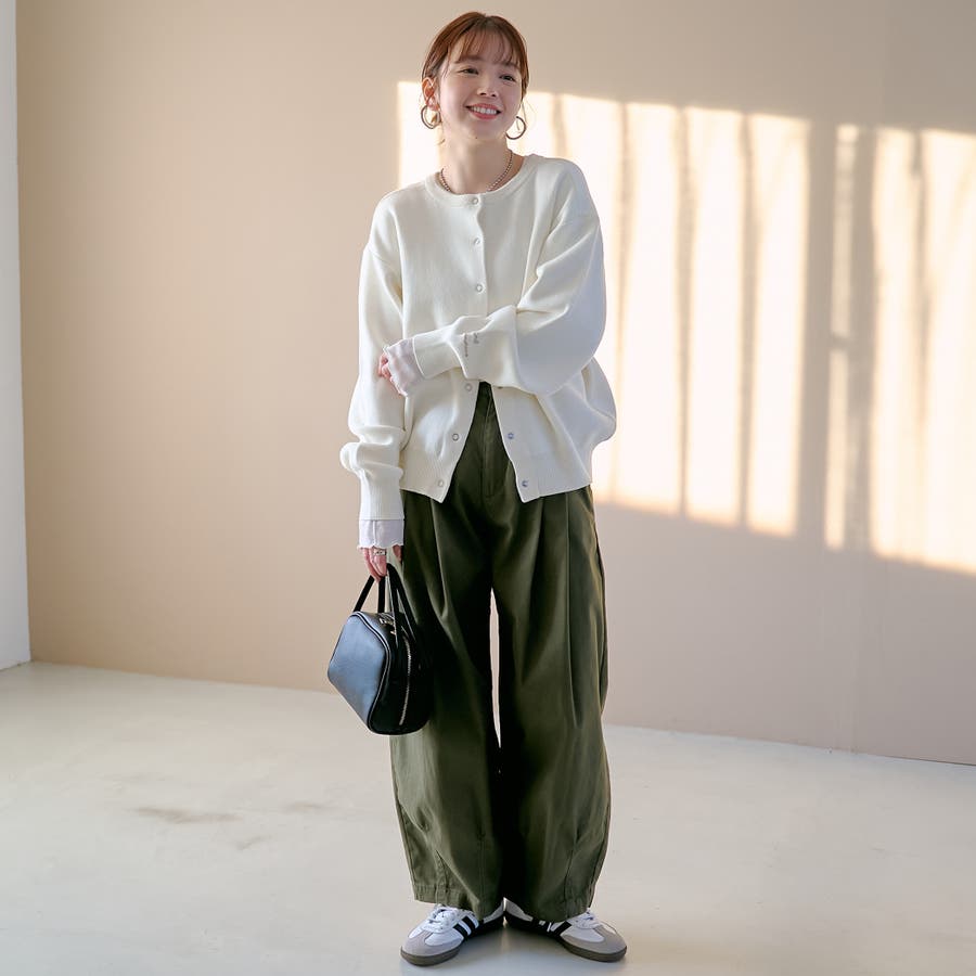 サイズ感:全体的にややゆったりめのシルエット。リブがしっかりしているので、シルエットにメリハリが出てバランスよく着られます。インナーは薄手のものだと着ぶくれしにくいと思います。