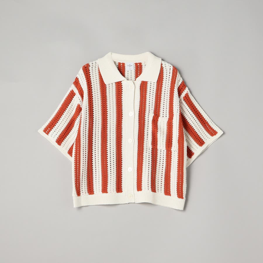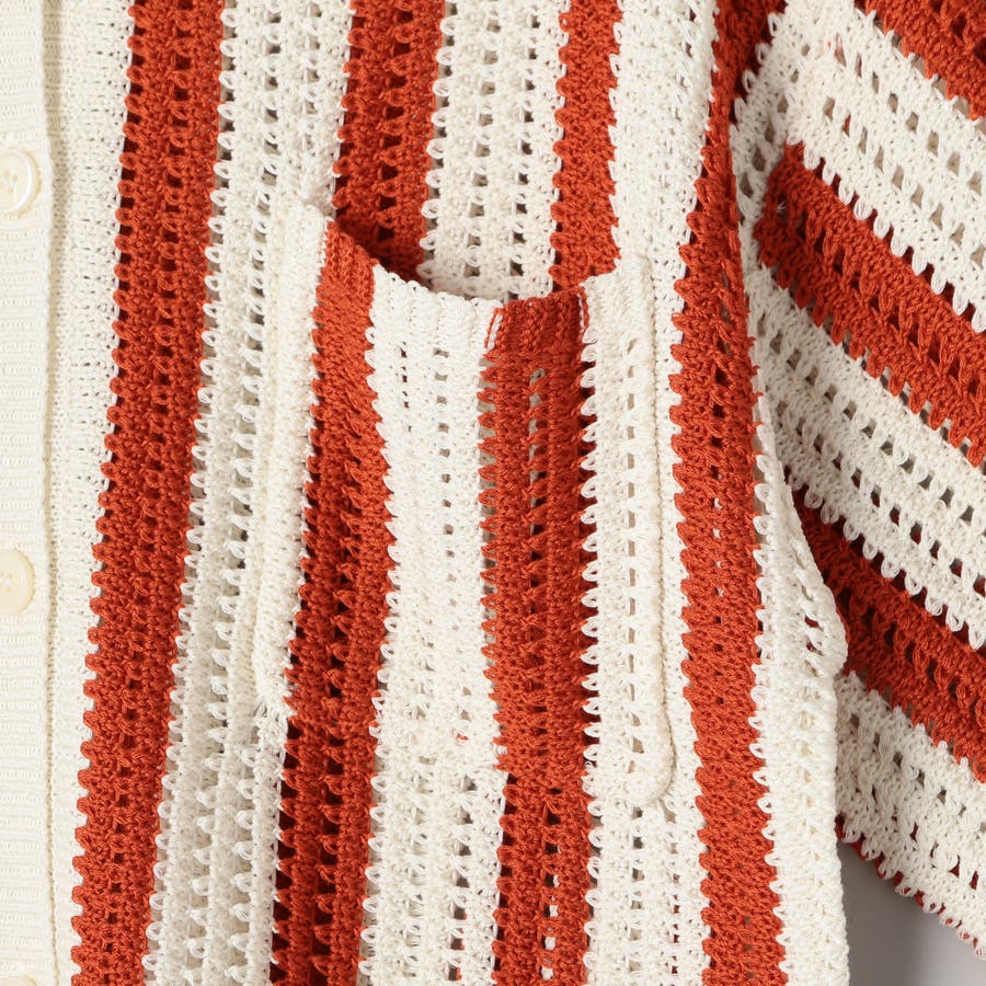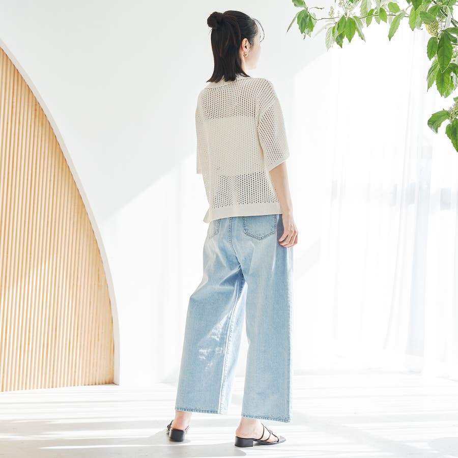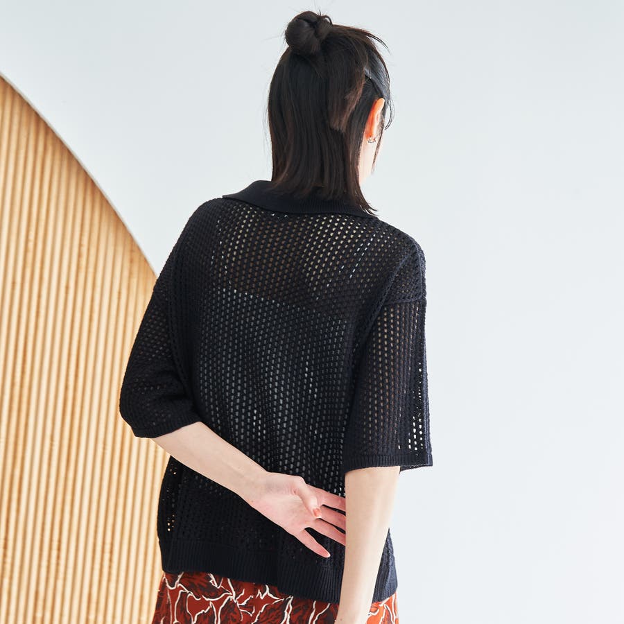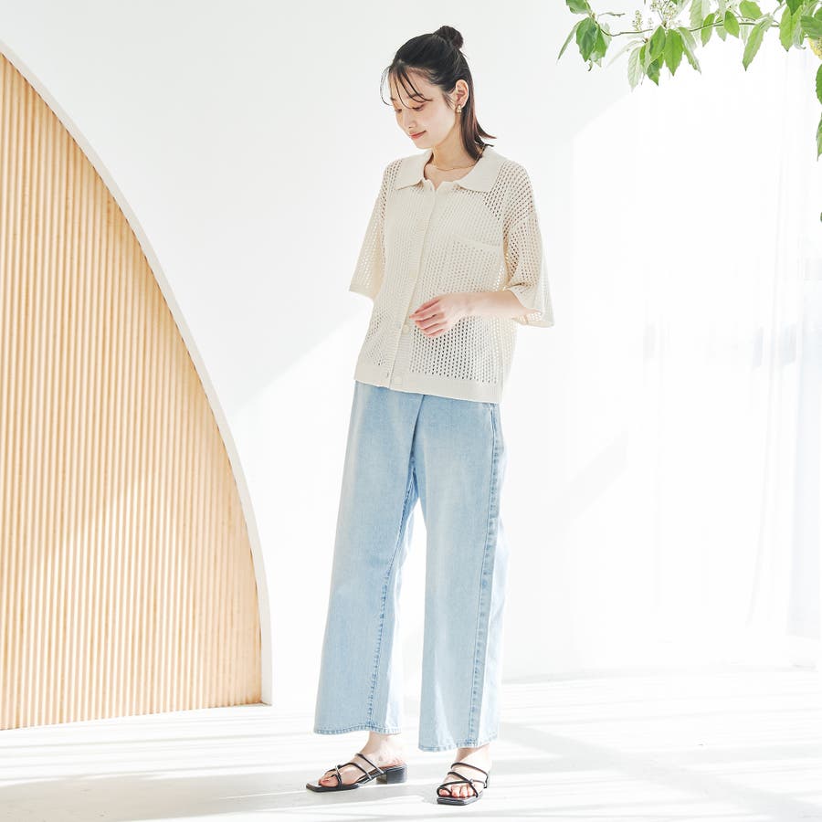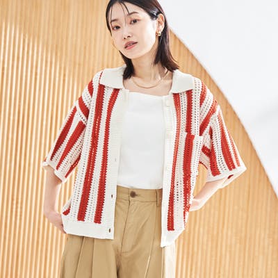 透け感のある軽やかなメッシュ編みが、今季らしい抜け感を演出するカーディガン。