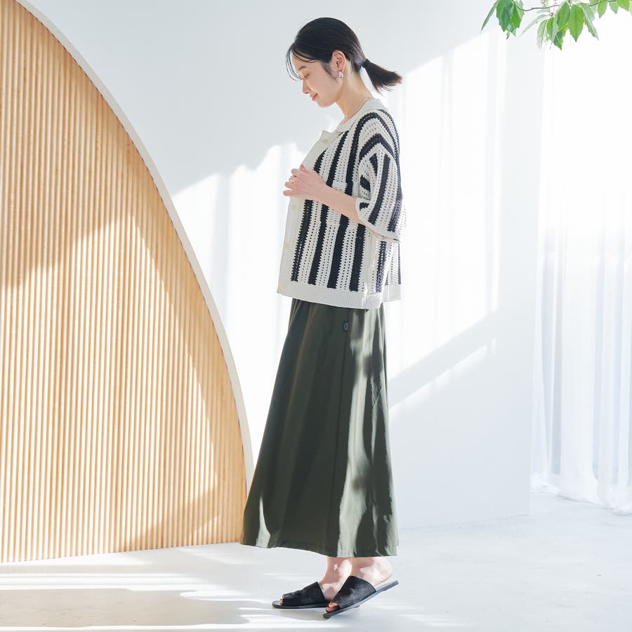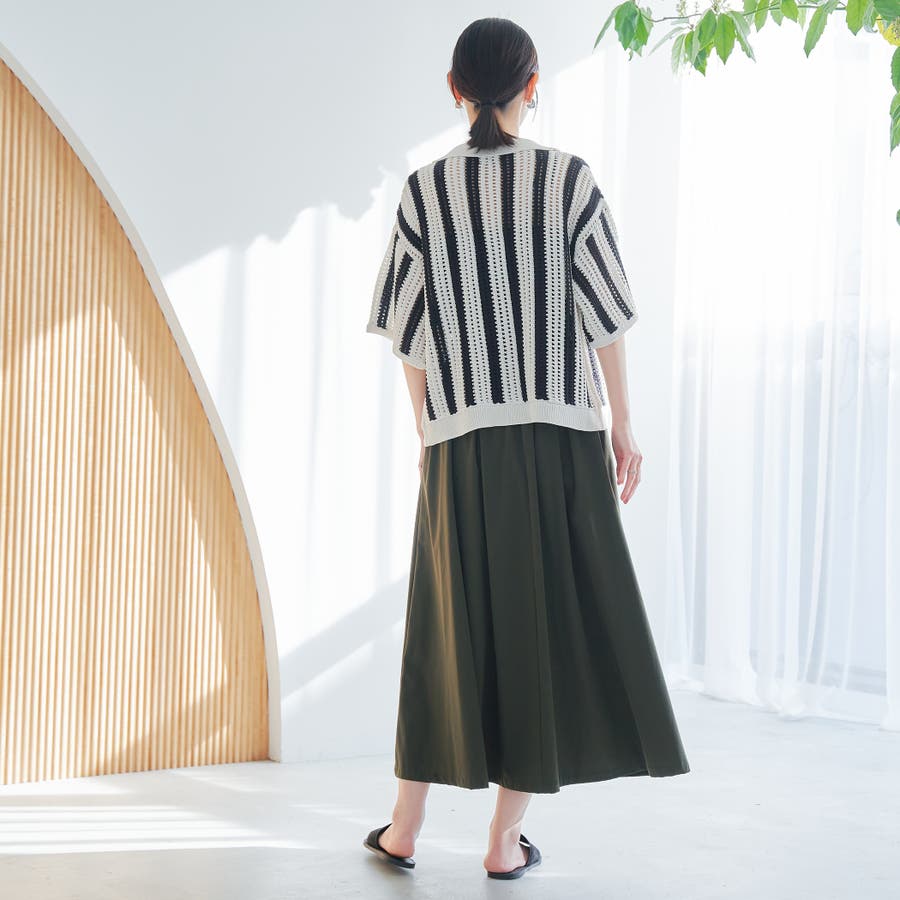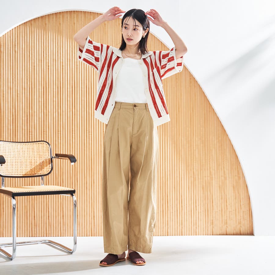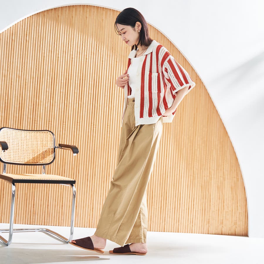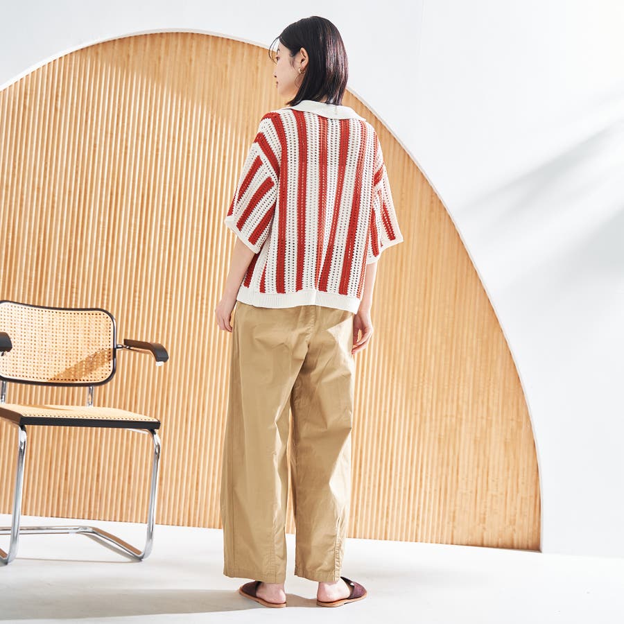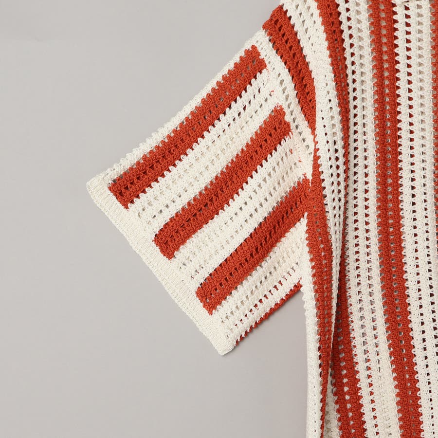 素材にはソフトな風合いのアクリル糸を使用し、ざっくりとした編み地が軽やかで涼しげな着心地を実現。