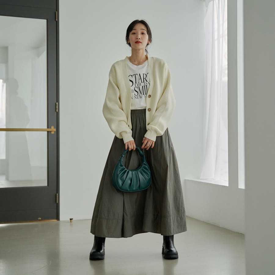 ふっくら感が印象的ながら無地で合わせやすく、独特なボリューム感でスタイリングの主役にもなる一枚です。