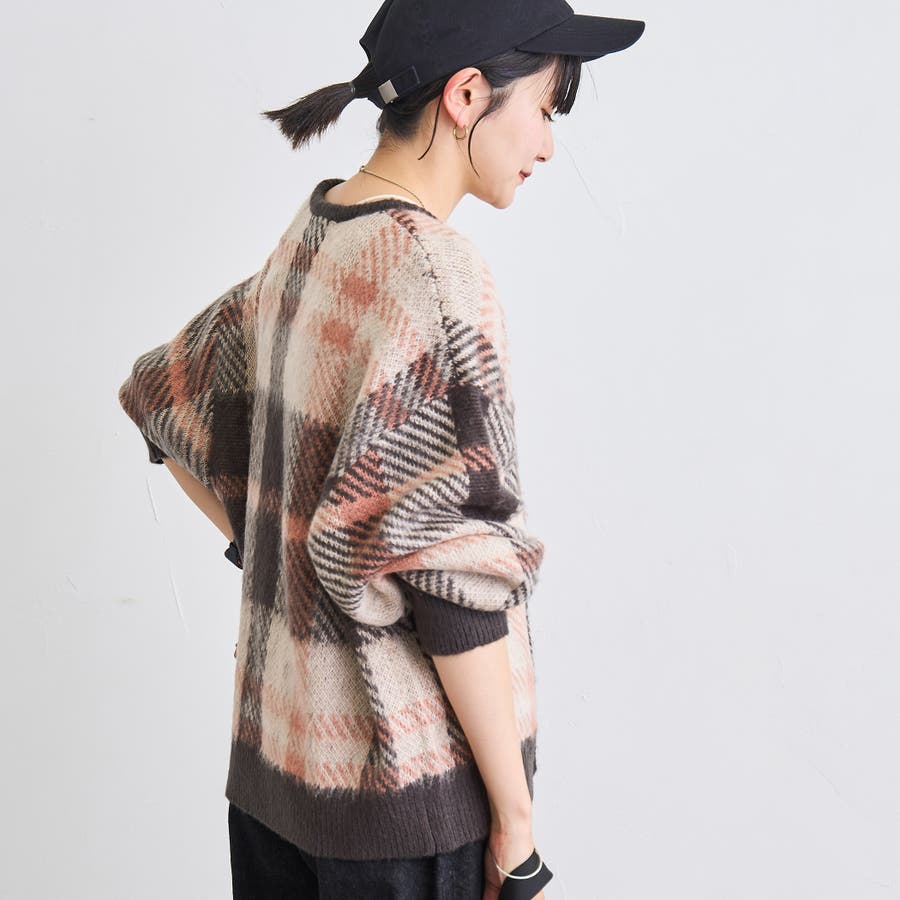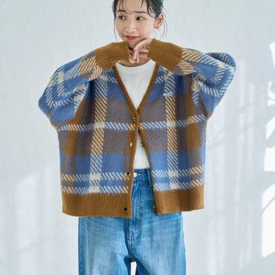 76376360091:シャギージャガードニットカーディガン