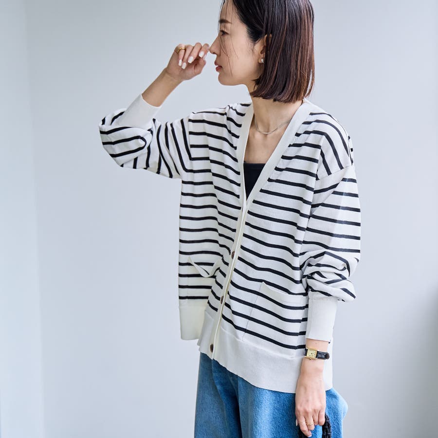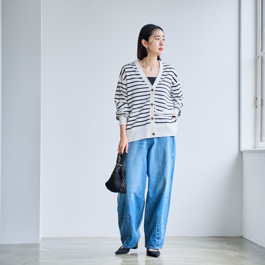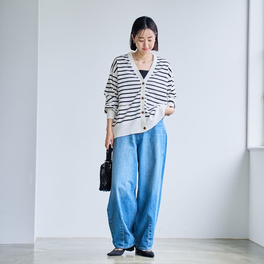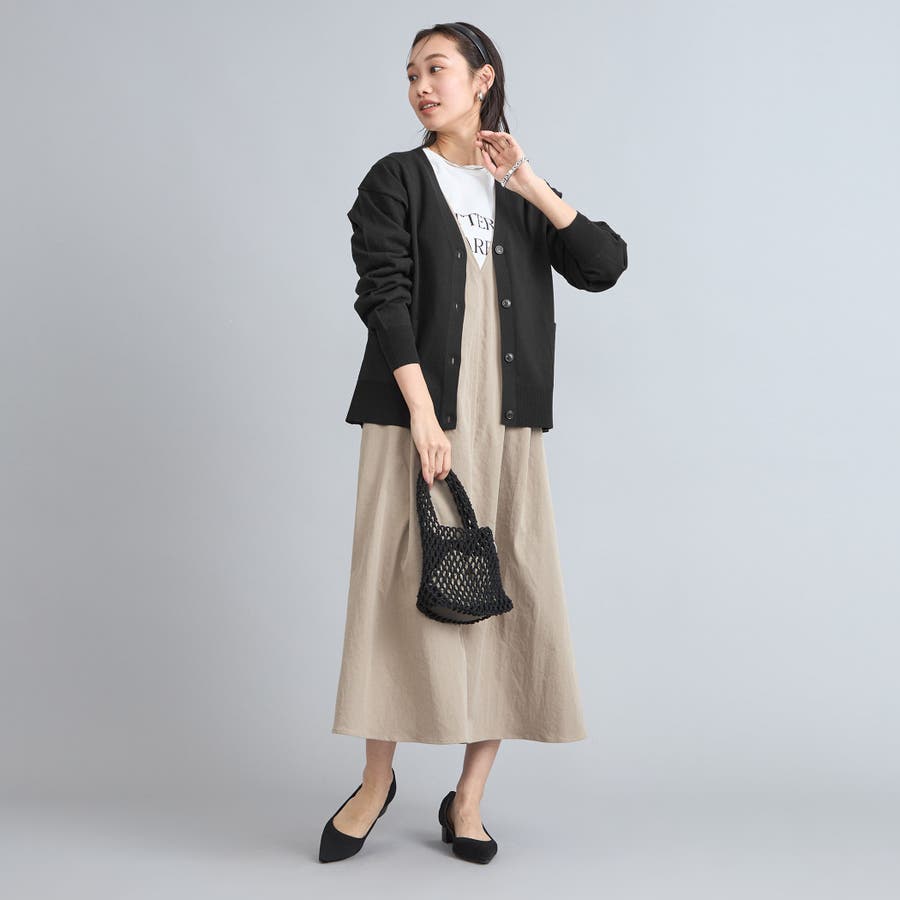 このカーディガンは、ストンと落ちるデザインなので、ぽっこりお腹が目立ちません!