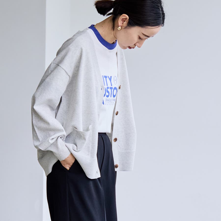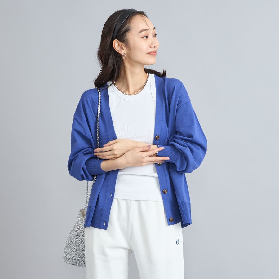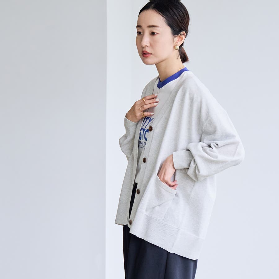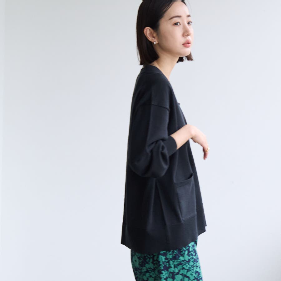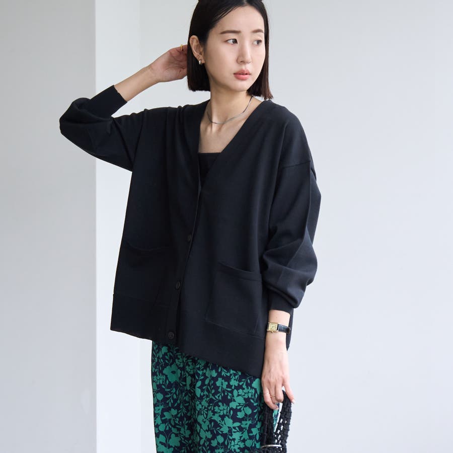 身頃や袖に程良い量感を持たせたニットカーディガン。