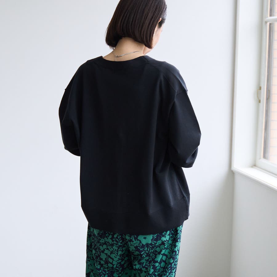 綺麗なシルエットが出る程良い厚みの天竺ニットを使用。