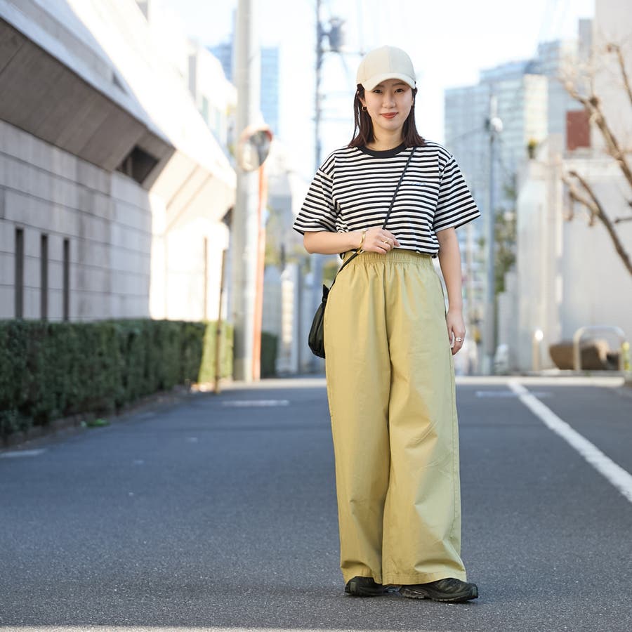 コンパクトなトップスをインしたり、オーバーサイズのトップスとルーズに着こなすのがおすすめです。