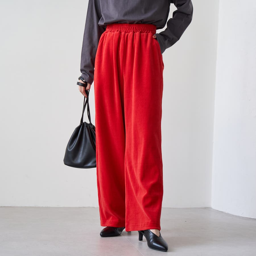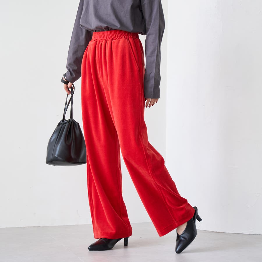 カラーで遊べる、トレンド感たっぷりのベロアパンツ