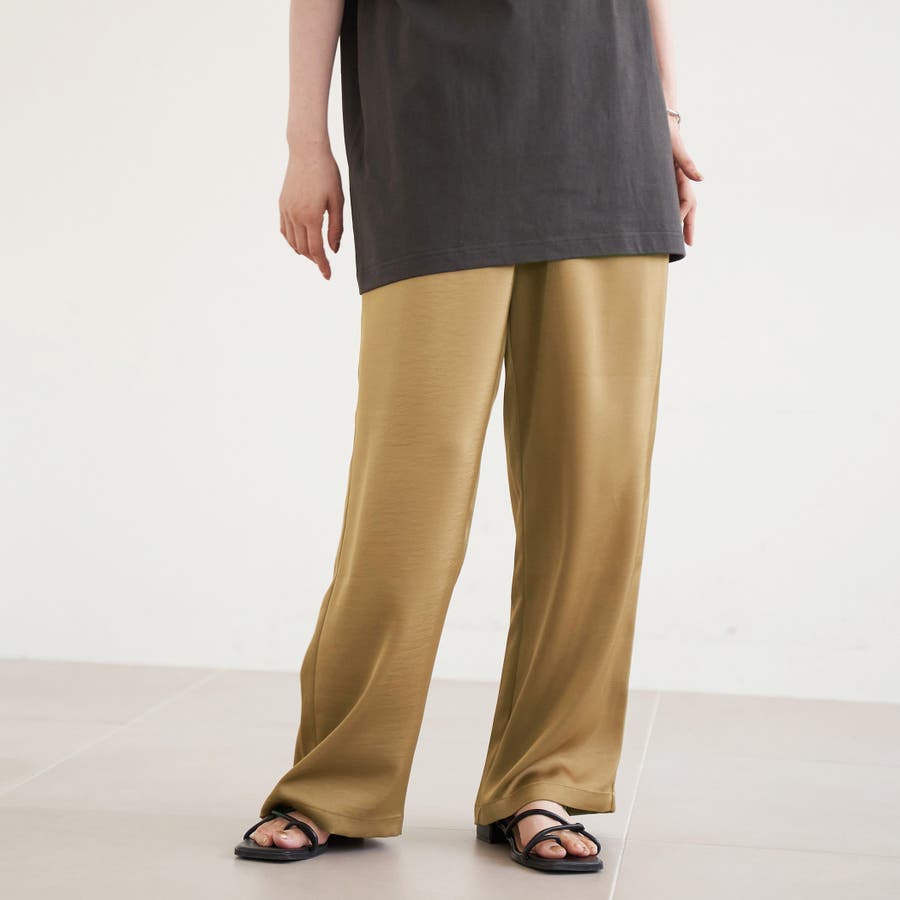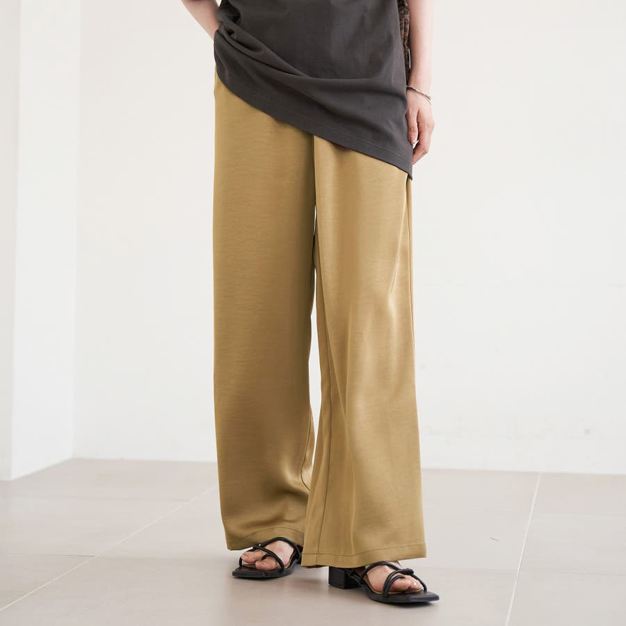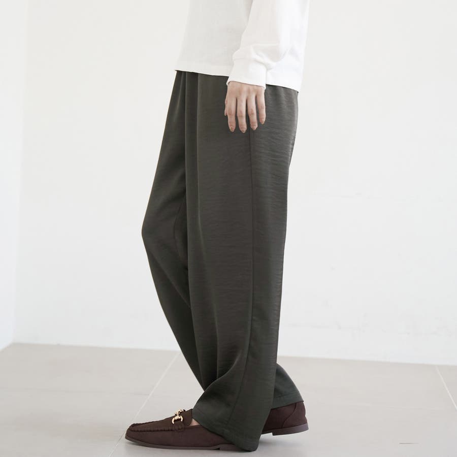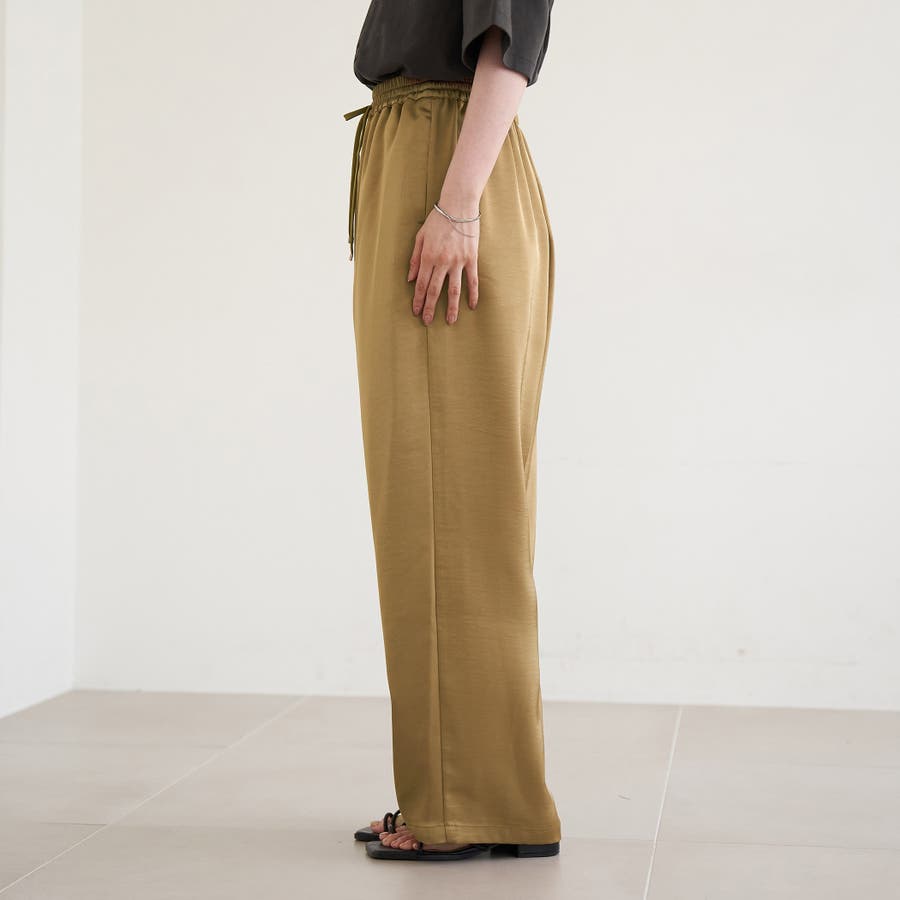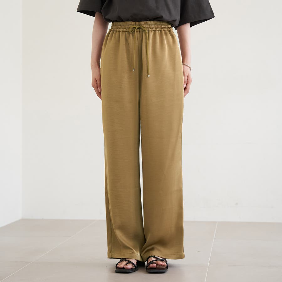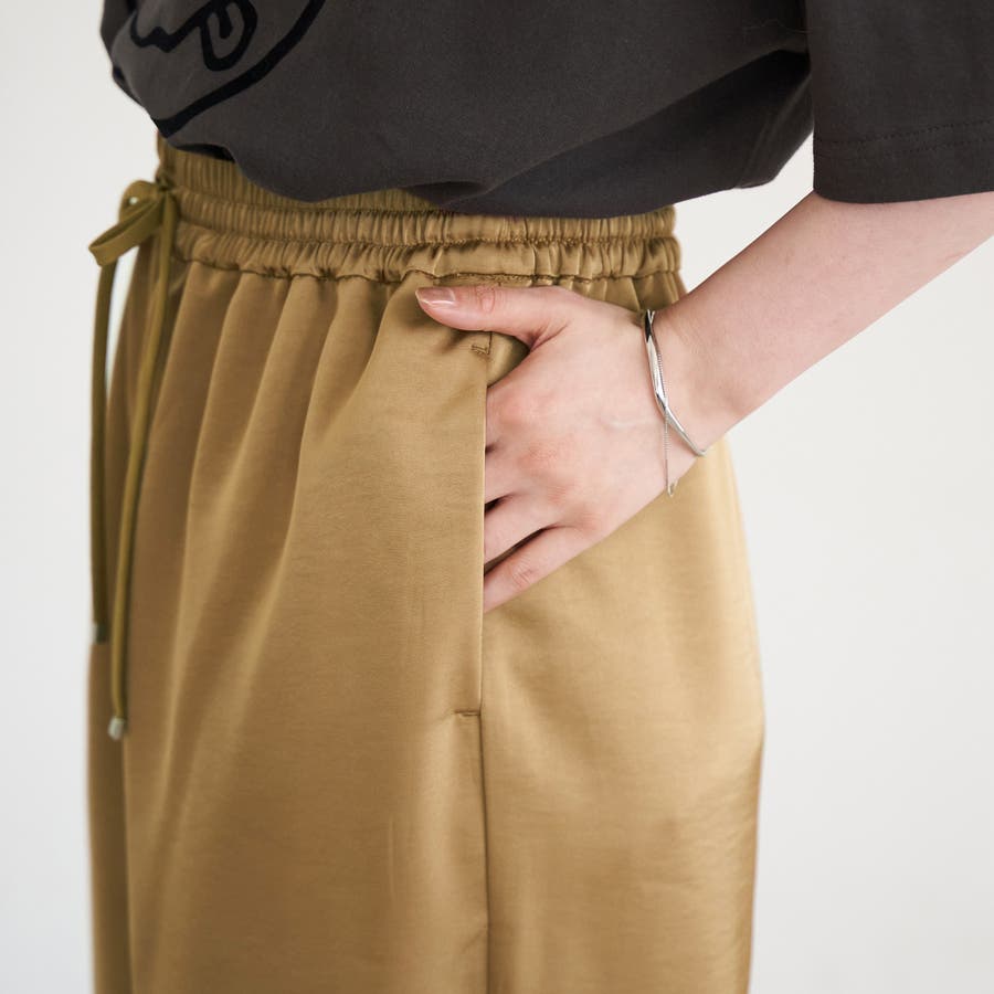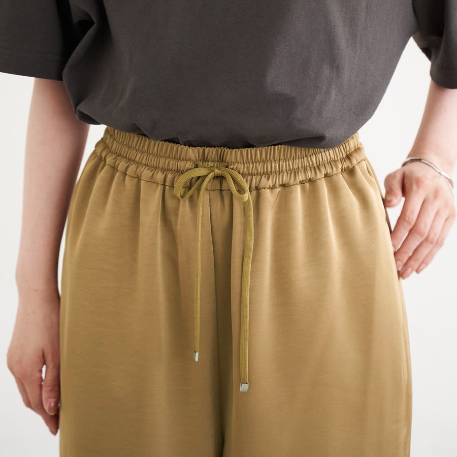 落ち感のあるサテン素材を使用したイージーパンツ。