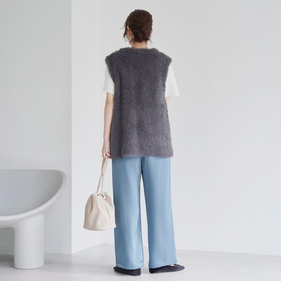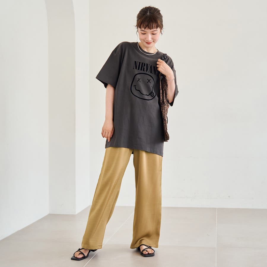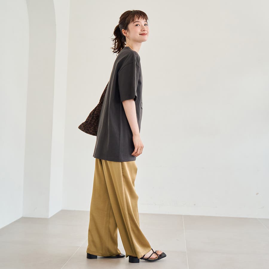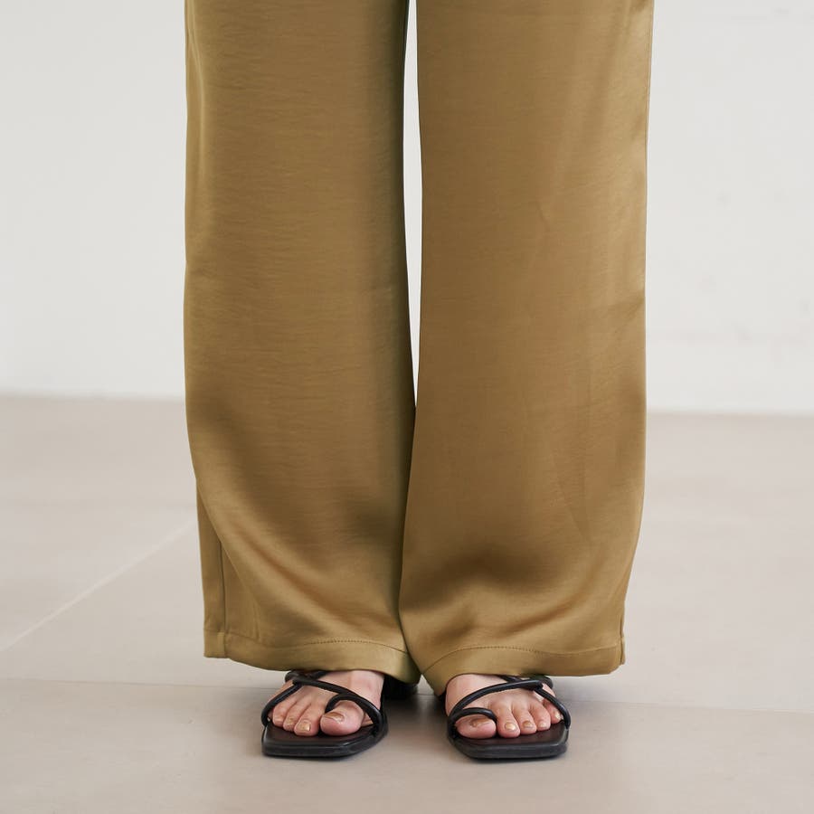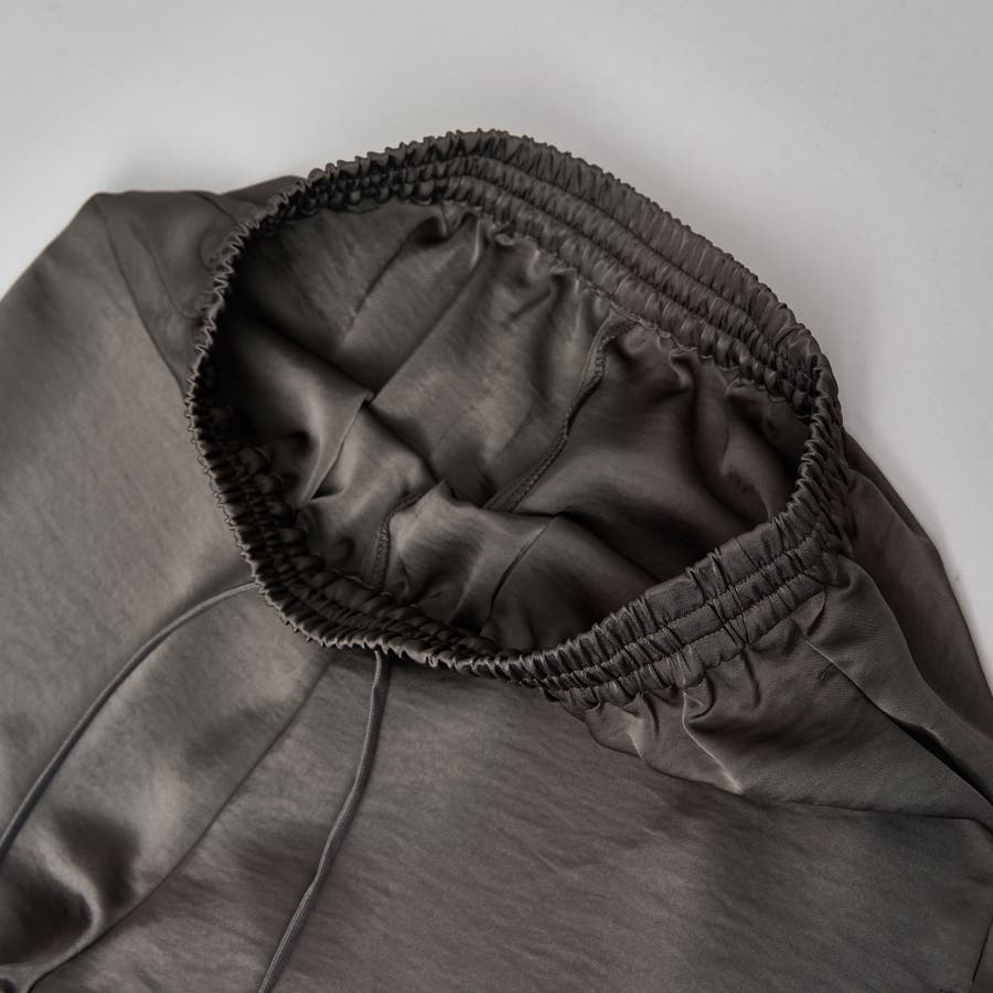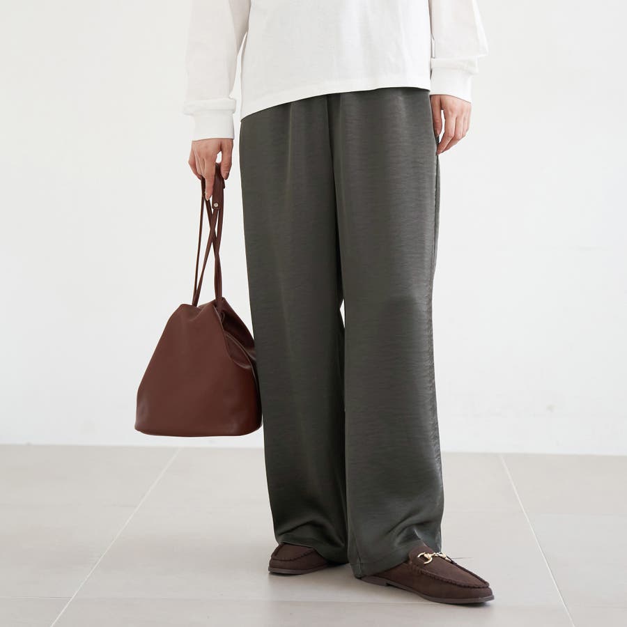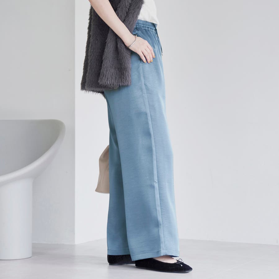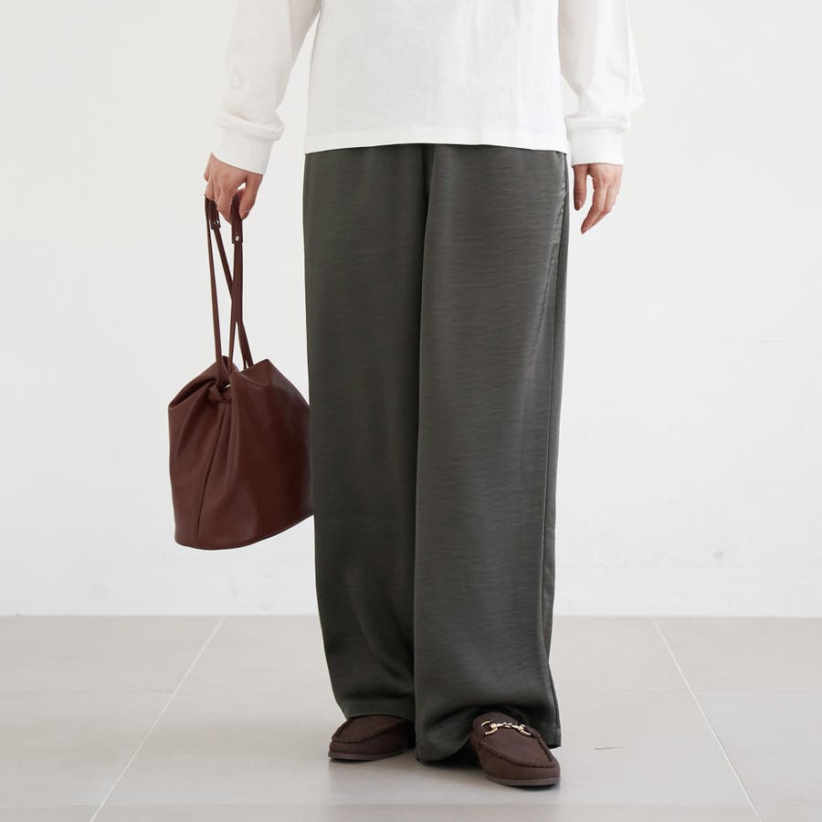 落ち感のあるサテン素材を使用したイージーパンツ。