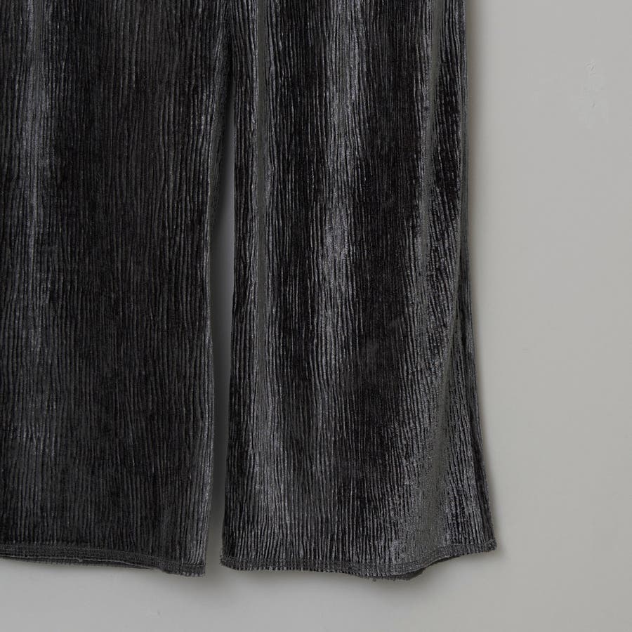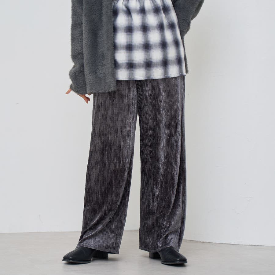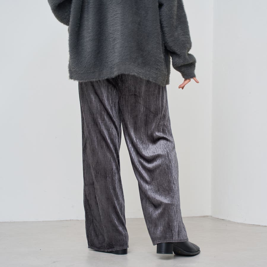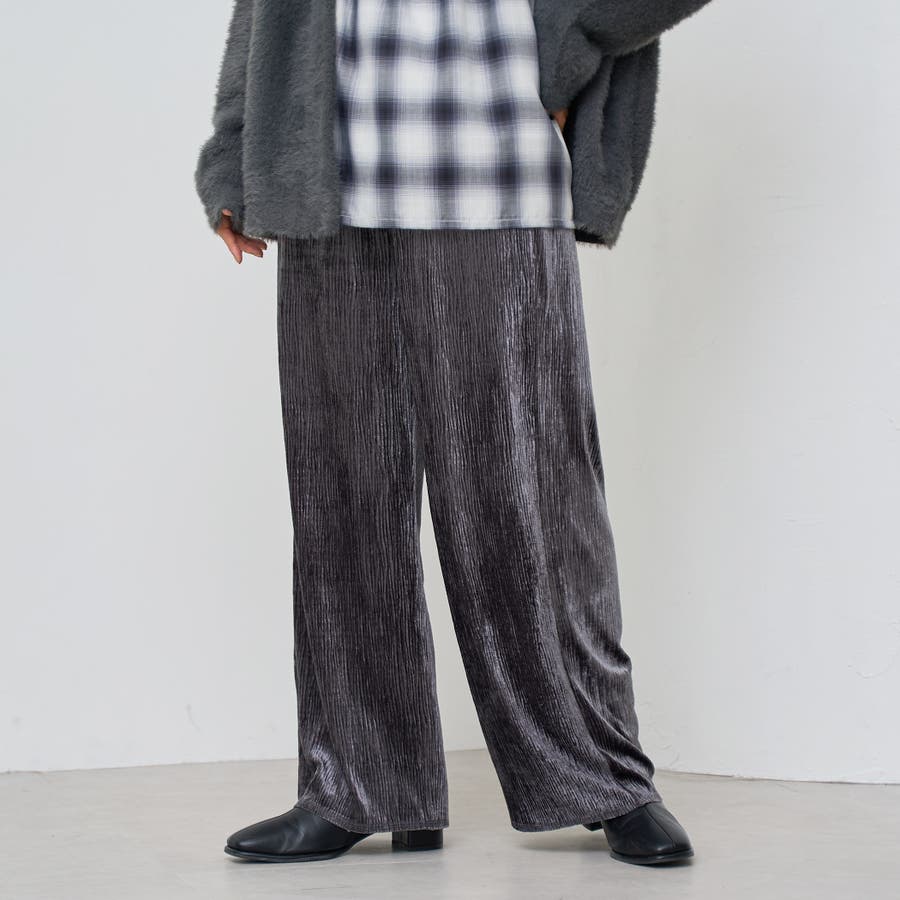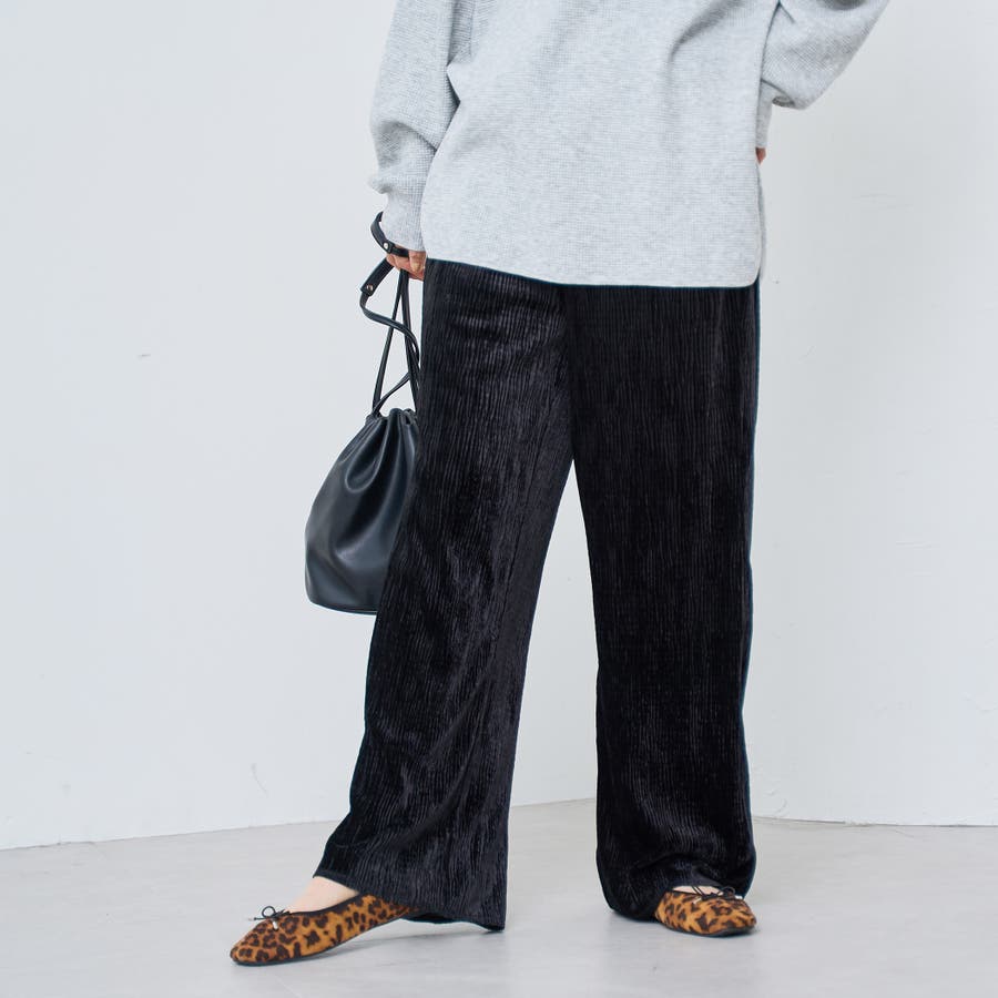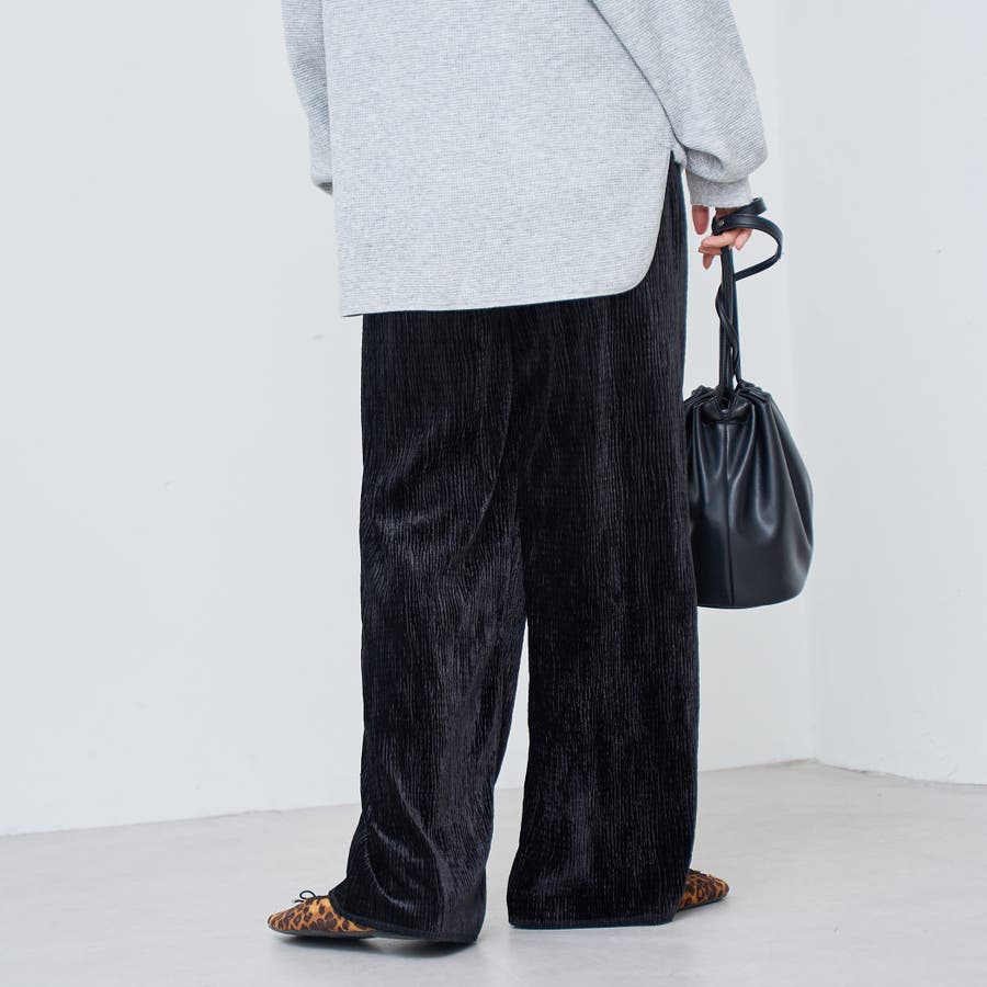 光沢ベロアが映える。リラックス感のあるイージーワイドパンツ