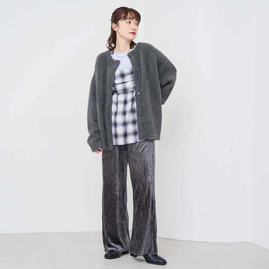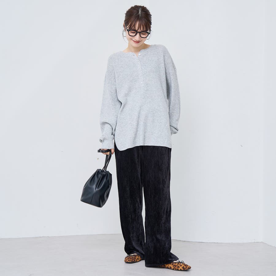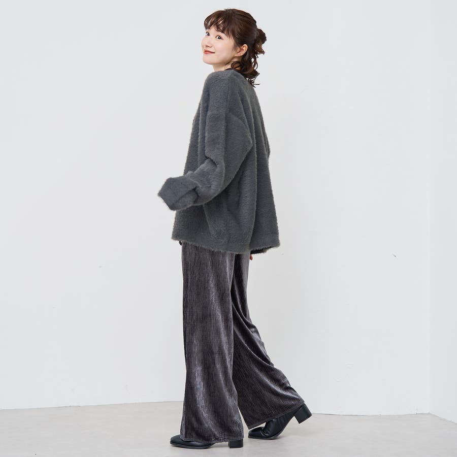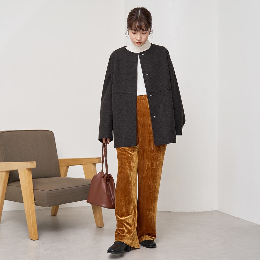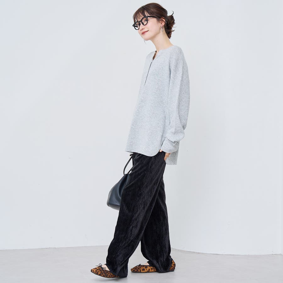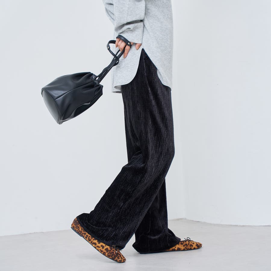 光沢ベロアが映える。リラックス感のあるイージーワイドパンツ
