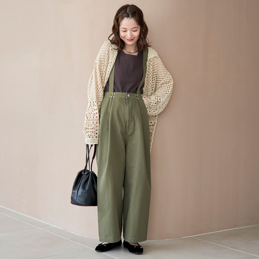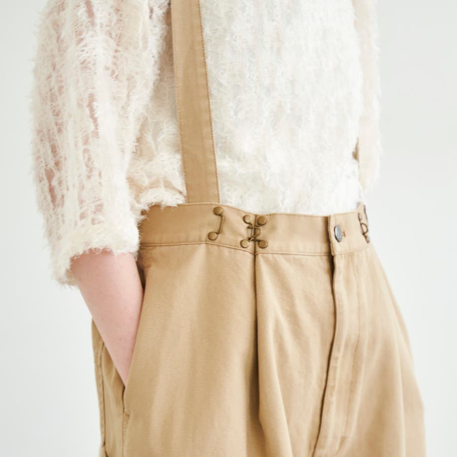取り外し可能なサスペンダーとウエストのアジャスター付きで、気分やコーデに合わせてシルエットの変化を楽しめます。