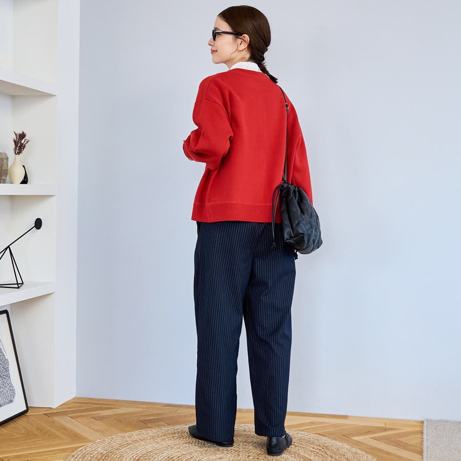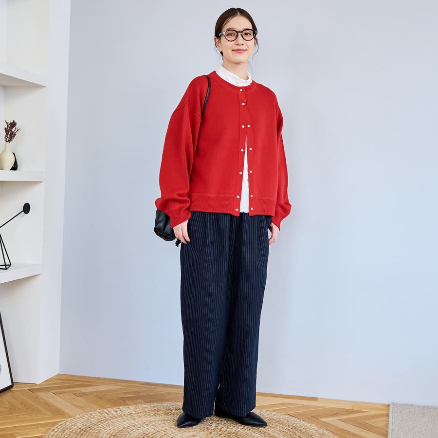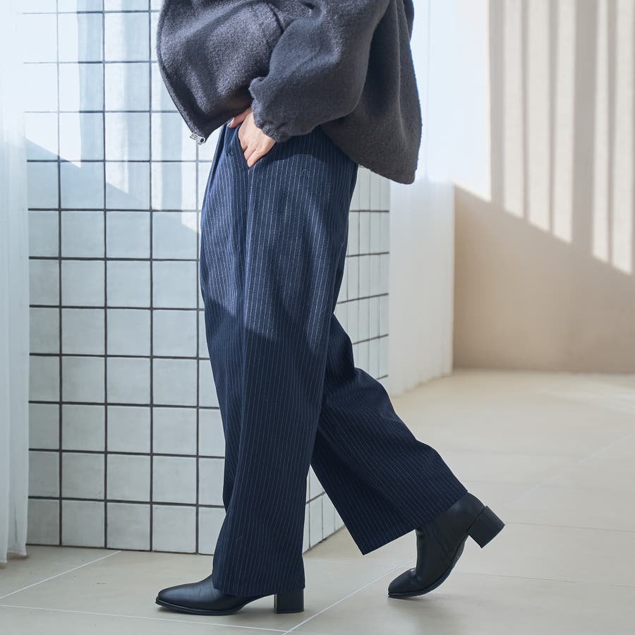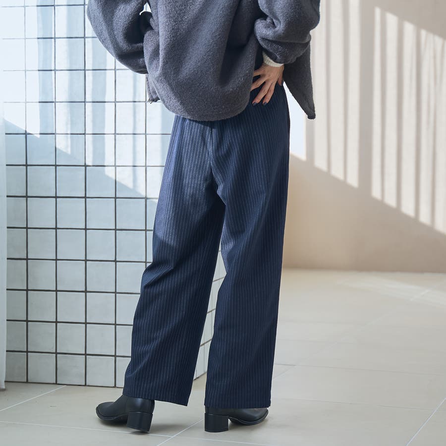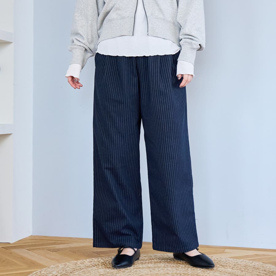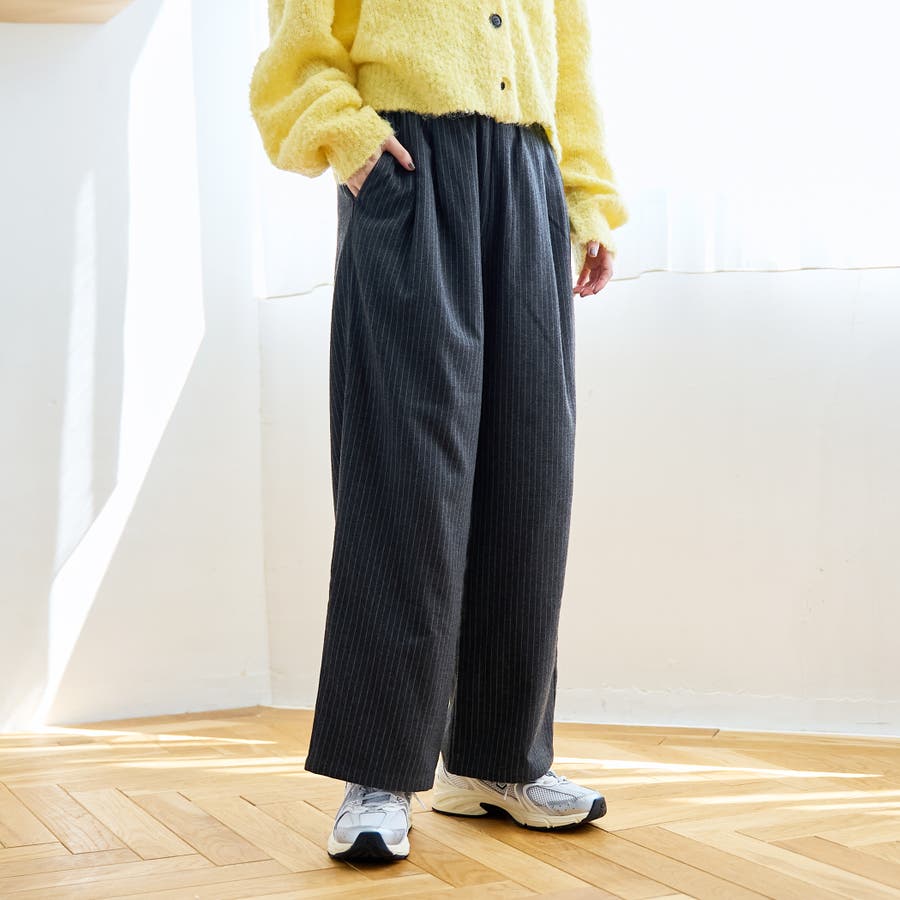 〇きちんと感のあるストライプ柄ワイドパンツ