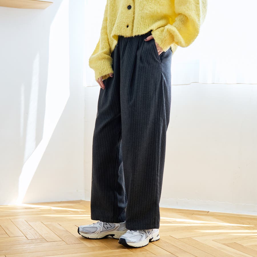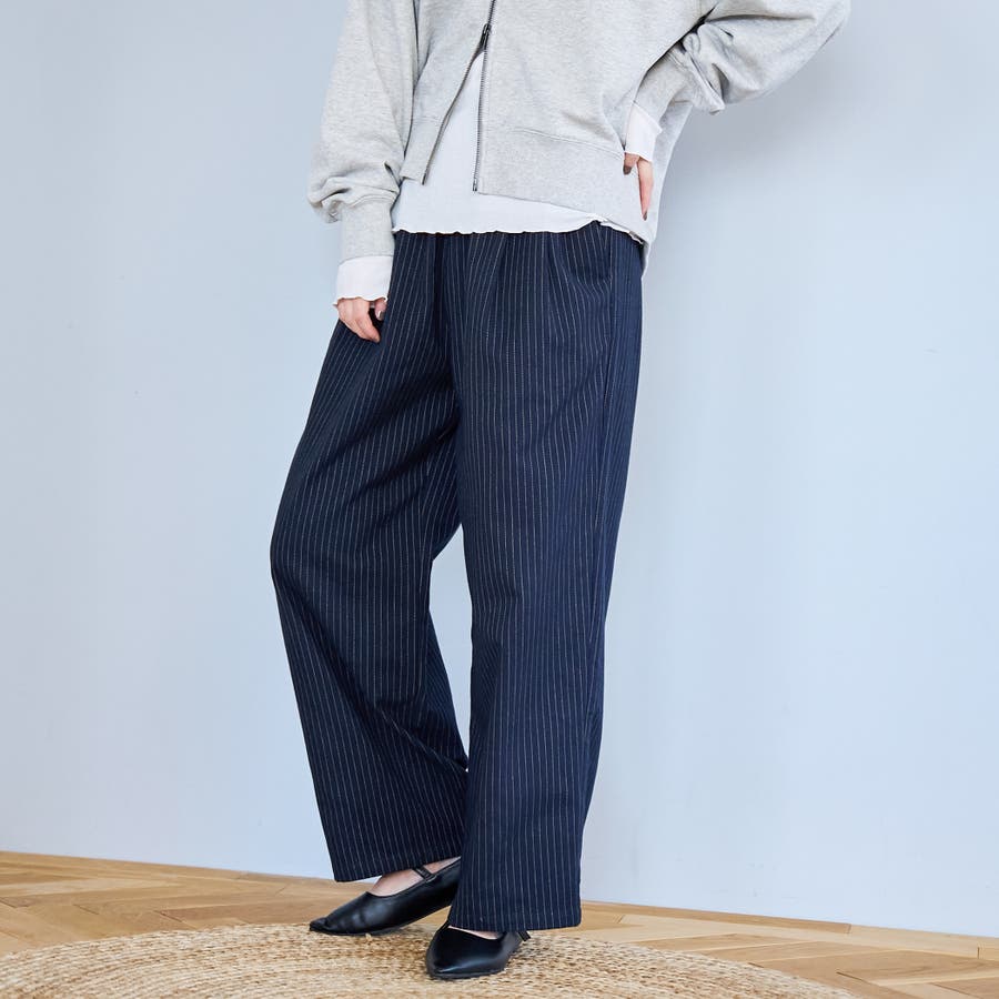 TRストライプタックワイドパンツ