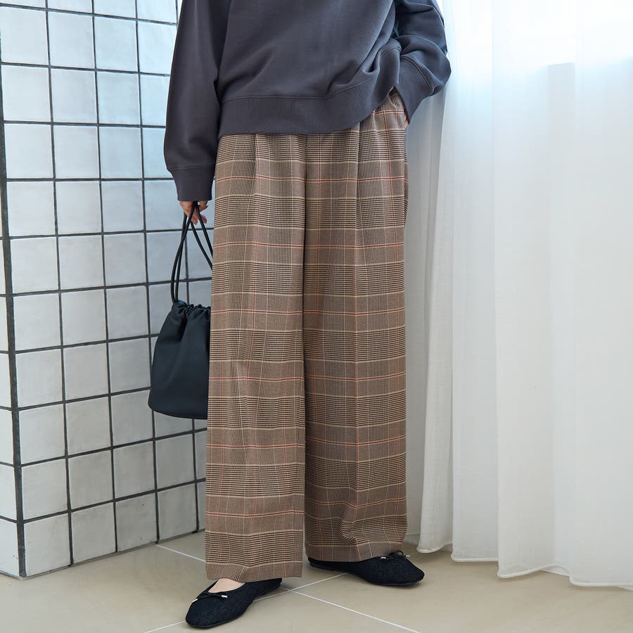 ご好評のイージービューティーワイドパンツのシルエットで、トラッドな雰囲気を楽しめるチェック柄が登場。