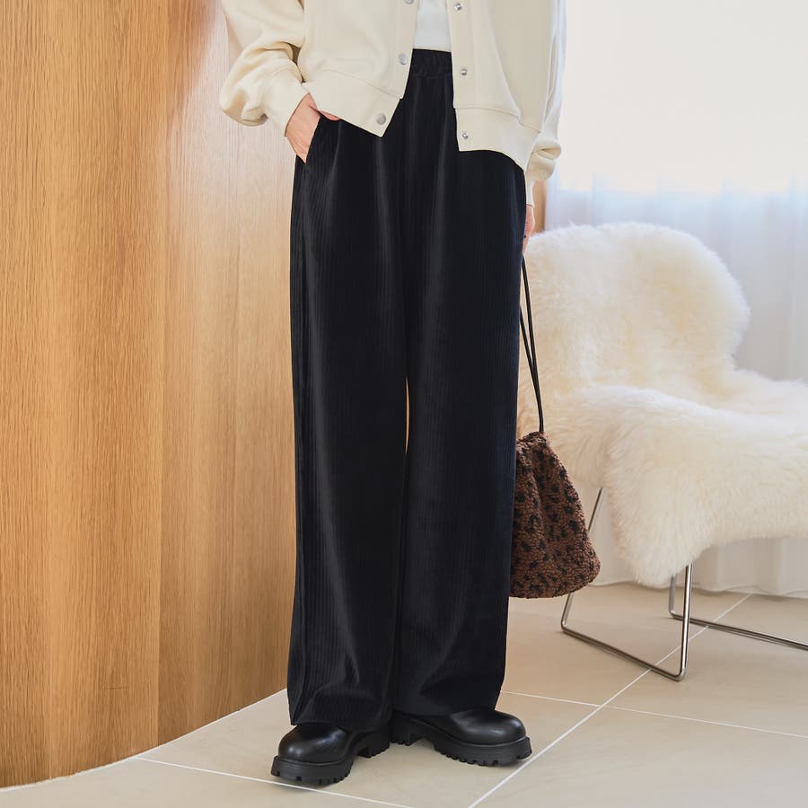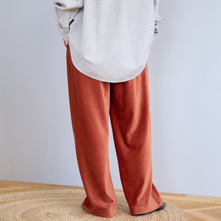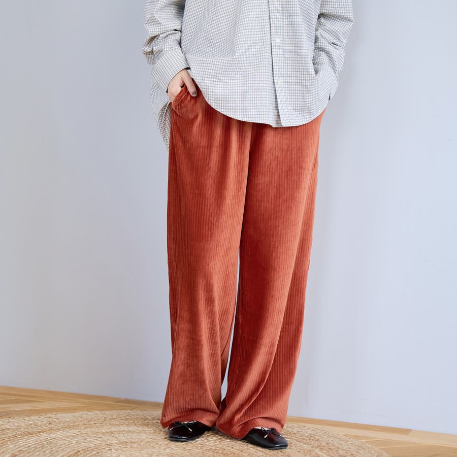 もちもち感触でリラックス。大人のイージーワイドパンツ。