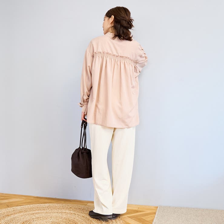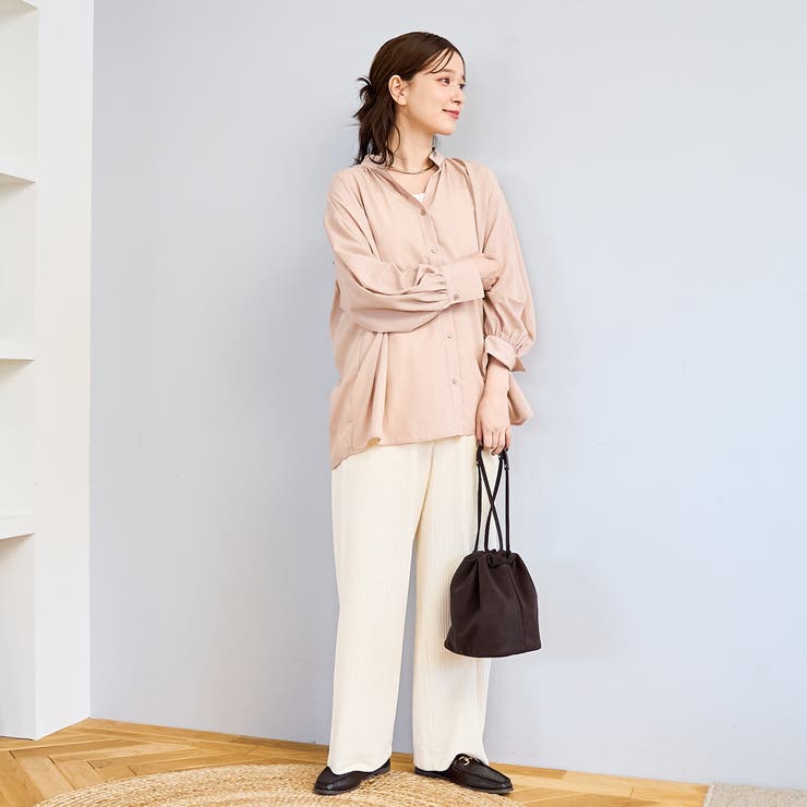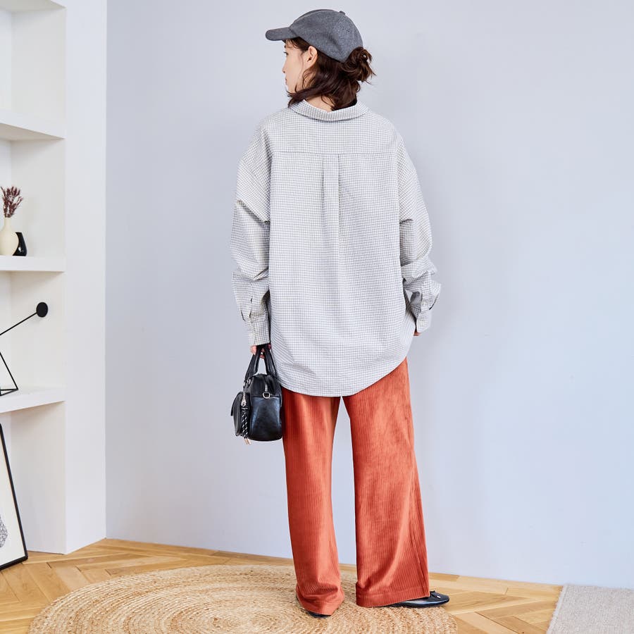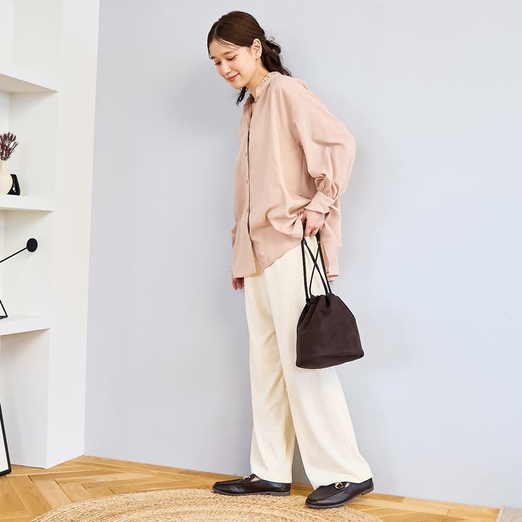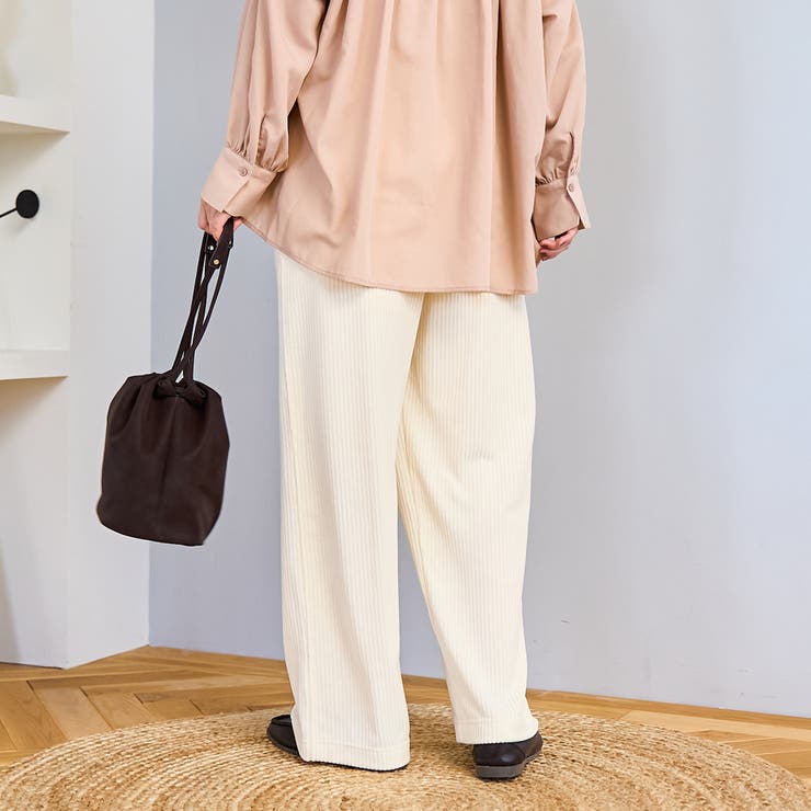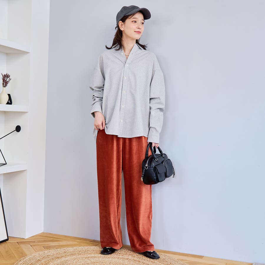 ウエストはゴム仕様でらくちん、ルーズでワイドなシルエットがリラックス感のある着こなしを叶えます。
