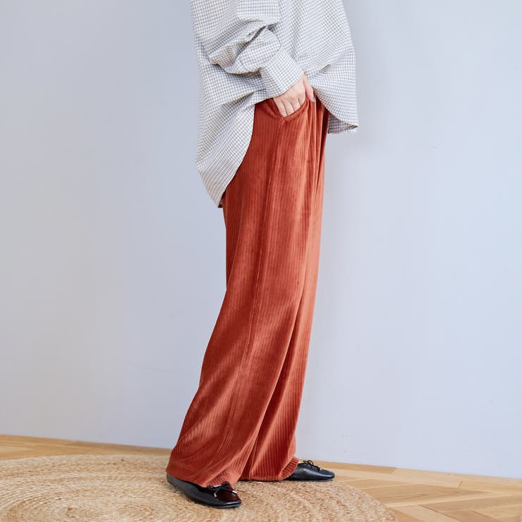 フェレットライクな柔らかくもちもちとした手触りが心地よい、カットコールイージーワイドパンツ。