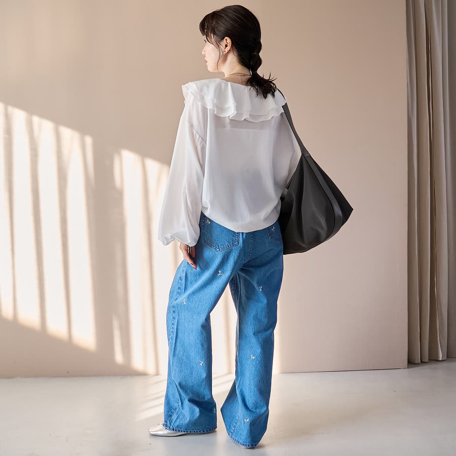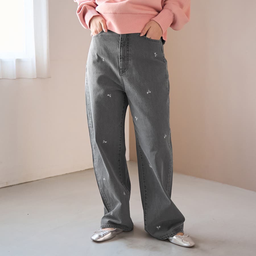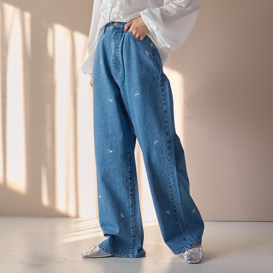 ルーズ×花刺繍でつくる、こなれデニムスタイル。