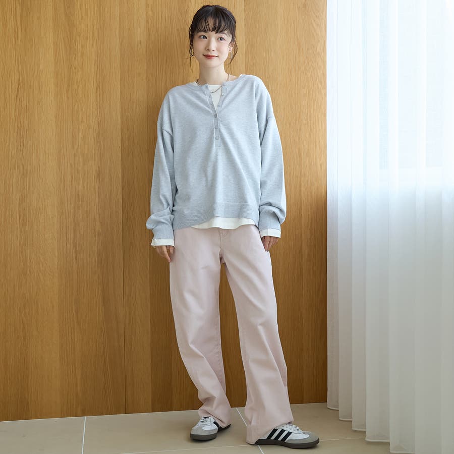 今時期はスウェットやニットとの組み合わせで、ゆるっとした抜け感コーデを楽しめます。