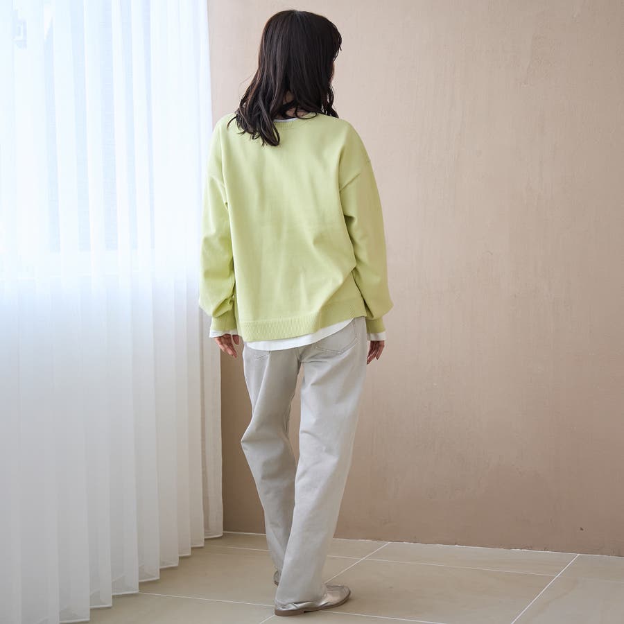 【選べる6色展開 / スプリングカラー】袖刺繍 スウェットライクハイゲージニット(品番:76306000021)